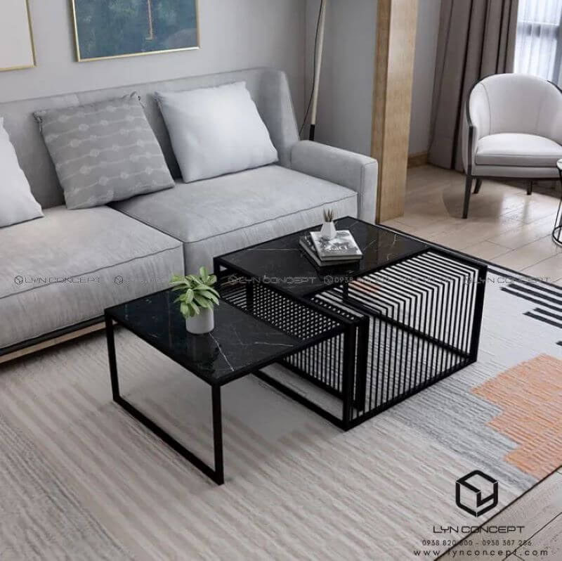 Bàn Trà Đôi Vuông Mặt Ceramic Xám Chân Sắt Sơn Đen - BT210A.1. [link xem chi tiết sản phẩm]