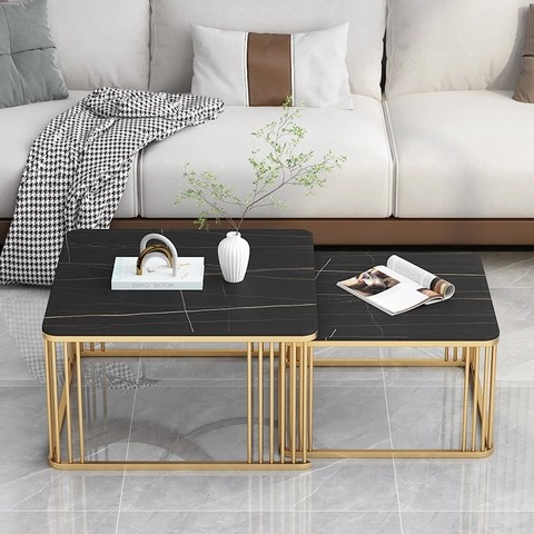 Bàn trà đôi vuông chân sắt sơn vàng - mang lại phong cách tinh tế và sang trọng cho phòng khách Nhấn vào đây để xem chi tiết sản phẩm