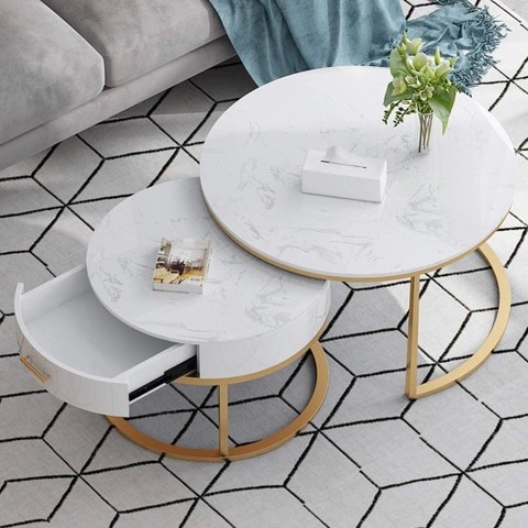 Bàn trà đôi tròn có hộc kéo chân sắt sơn vàng - lựa chọn lý tưởng để nâng cao vẻ đẹp của không gian sống Nhấn vào đây để xem chi tiết sản phẩm