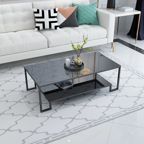 Bàn trà chữ nhật mặt kính 2 tầng chân sắt sơn đen - giải pháp tuyệt vời để làm nổi bật không gian nội thất Nhấn vào đây để xem chi tiết sản phẩm
