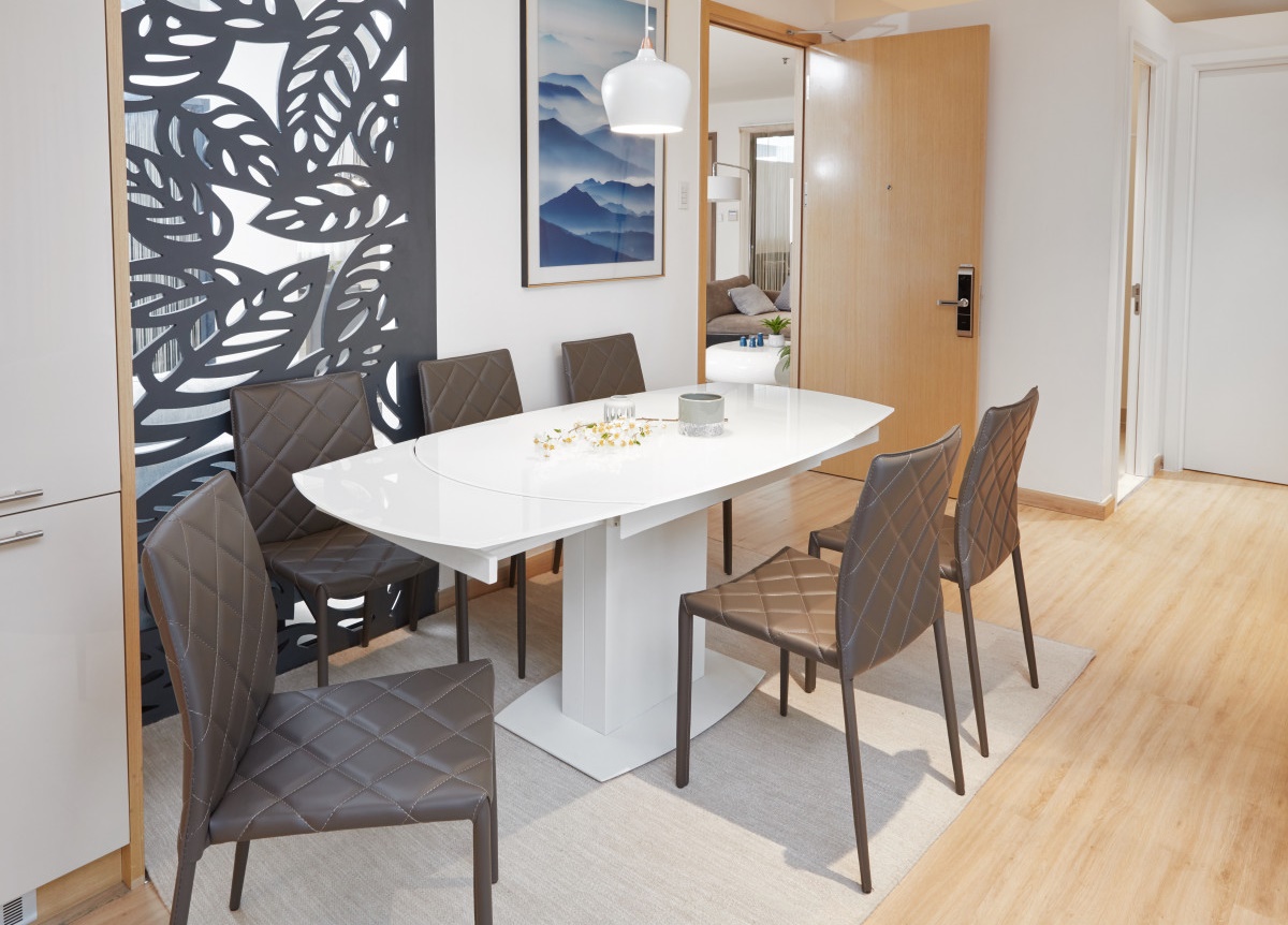 Bộ sưu tập bộ bàn ghế ăn cao cấp cho không gian bếp thêm ấm cúng với mặt kính bàn ăn dày, chịu lực, chống xước dễ dàng làm sạch và lau chùi. Các mẫu thiết kế bàn ghế ăn mới lạ cho phòng bếp của bạn thêm sang trọng và tiện nghi..