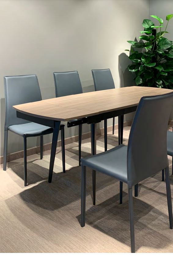 Chất liệu: Bàn mở rộng, màu gỗ Laminate, sắt đen/ xám chì