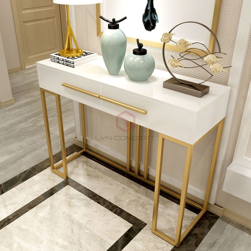 - Bàn/tủ Console là bàn để đồ trang trí ở sảnh, hành lang, phòng khách mang phong cách hiện đại. Vị trí đặt bàn/tủ thường là có một phía áp tường. Công năng sử dụng chính của loại tủ Console này là trang trí.