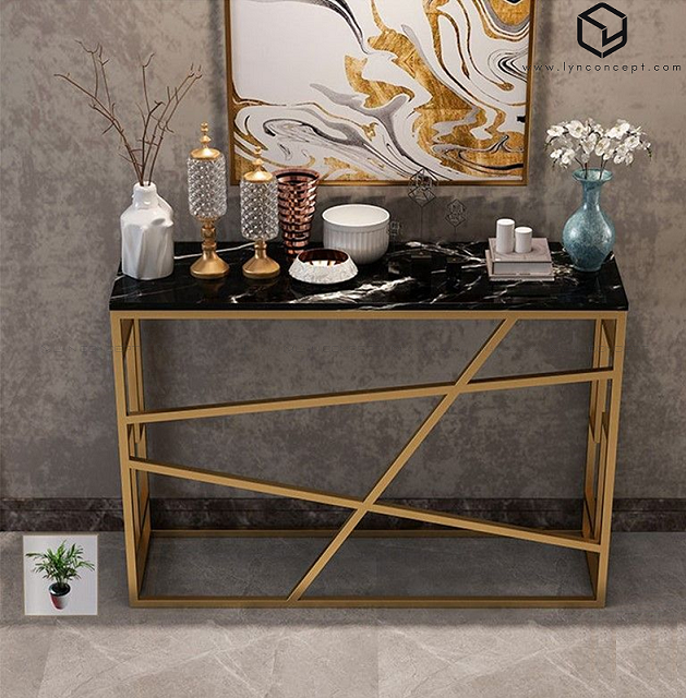 Bàn Console Casey Đá Đen Chân Sắt Vàng - BTT113.2