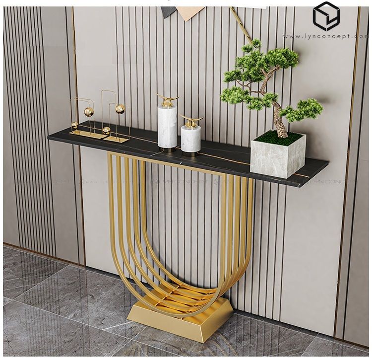 Bàn Console Cầu Vồng Mặt Bàn Đá Đen Chân Sắt Vàng - BTT111.2