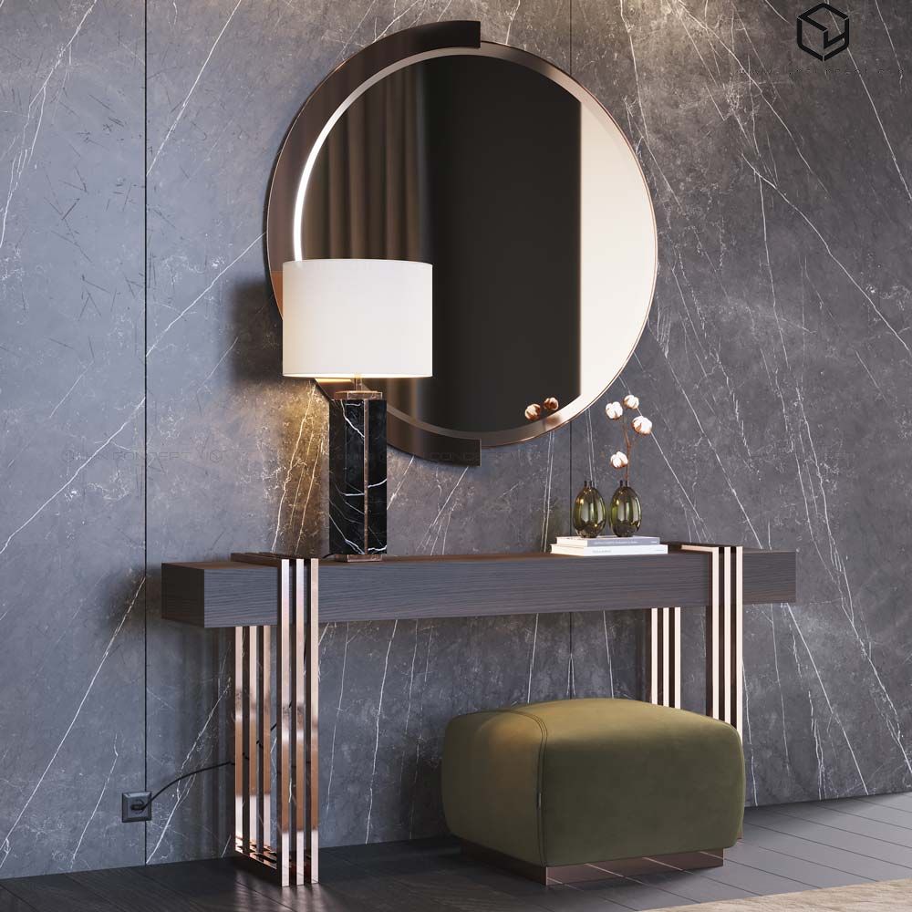 - Ở tiền sảnh, bàn/tủ Console có tác dụng thu hút ngay từ cái nhìn đầu tiên. Tủ Console được bố trí ở hành lang làm cho hành lang bớt vẻ đơn điệu. Khi đặt bàn ở cuối hành lang sẽ tạo một điểm nhìn thu hút về phía cuối.