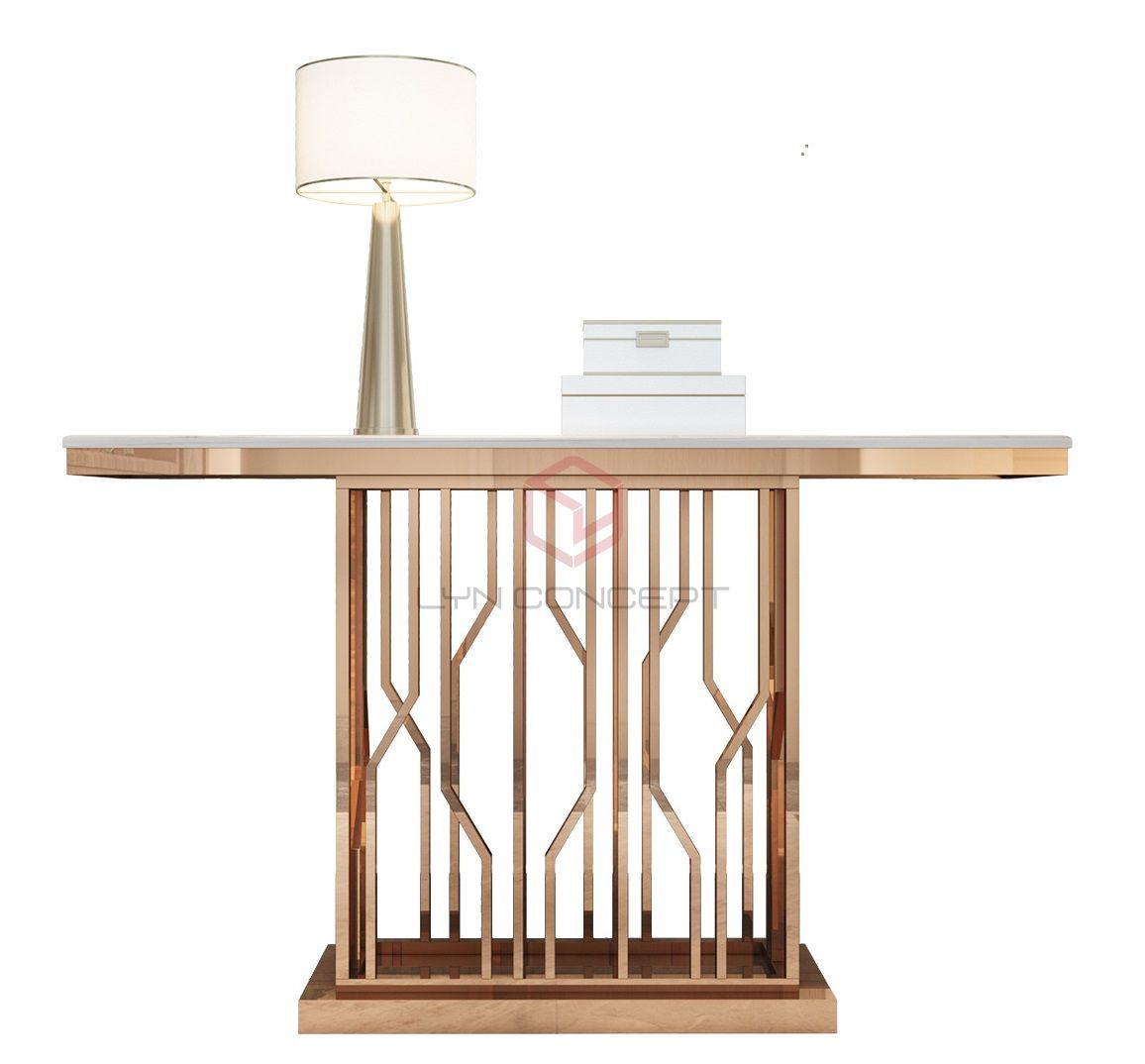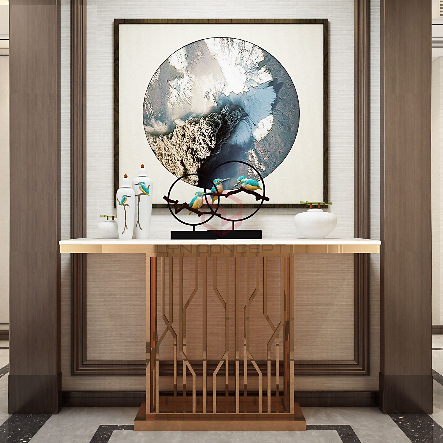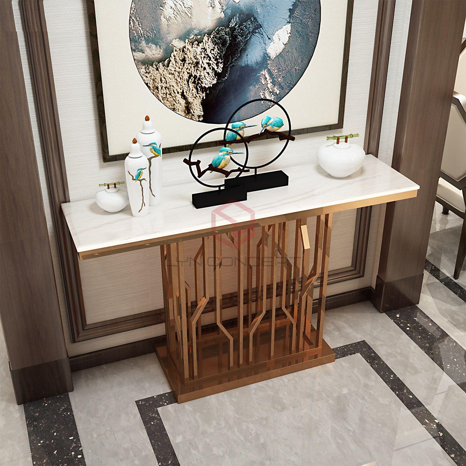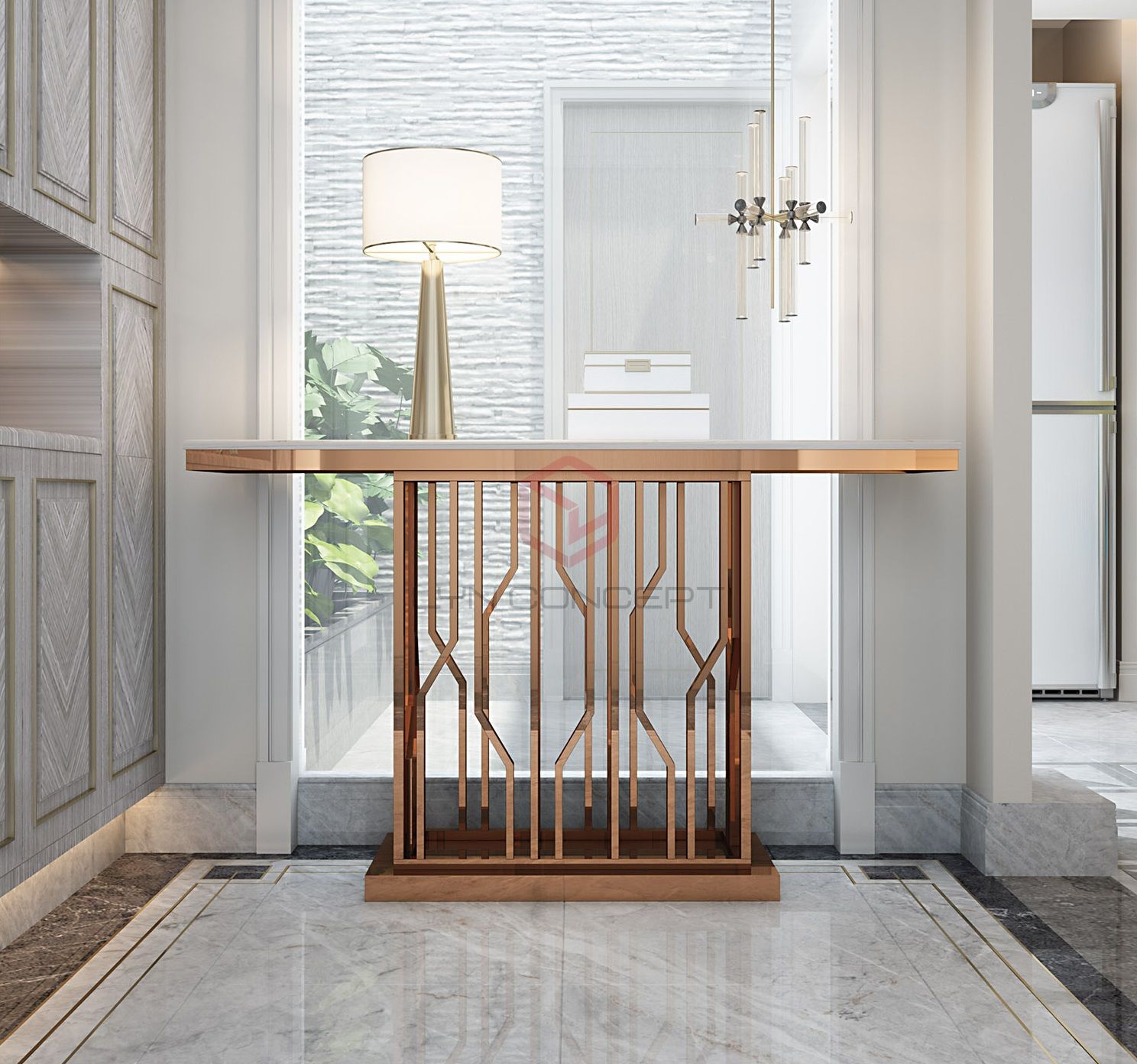 Bàn Console Mặt Đá Trắng Chân Inox Mạ Pvd Màu Rose Gold Cao Cấp - BTT27
