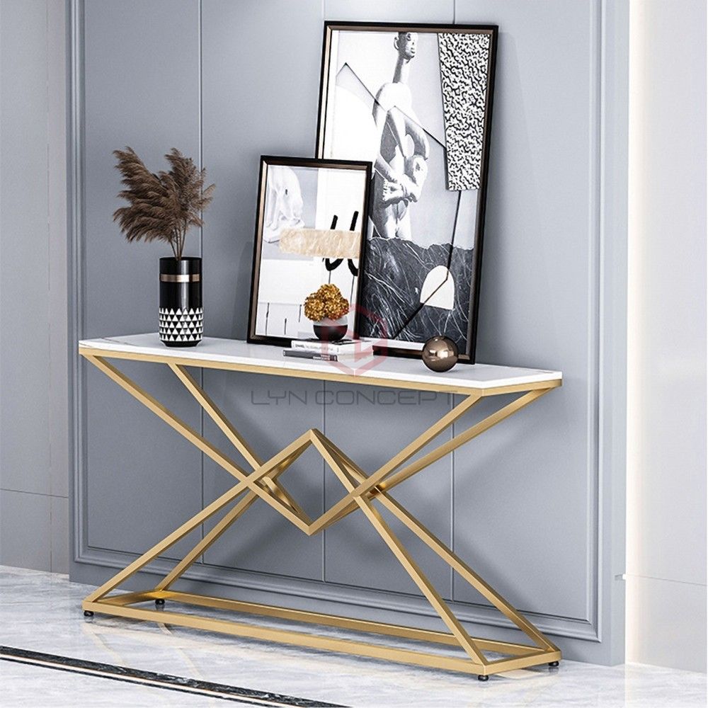 Bàn Console Mặt Đá Trắng Chân Inox Kiểu Mạ Pvd Màu Vàng Hiện Đại Cao Cấp - BTT12B