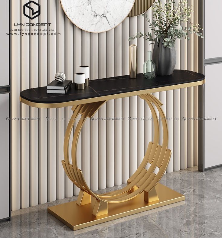 Bàn Console Mặt Ceramic Đen Chân Sắt Sơn Vàng - BTT119.2
