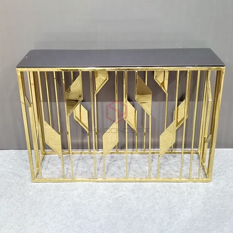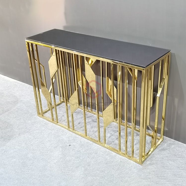 Bàn Console Mặt Kính Đen Chân Inox Xi Mạ Pvd Màu Vàng Cao Cấp - BTT29