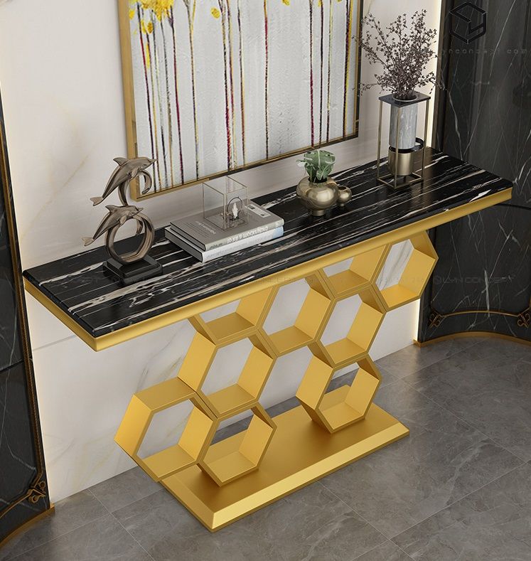 Bàn Console Tổ Ong Mặt Đá Đen Chân Sắt Vàng - BTT110.2
