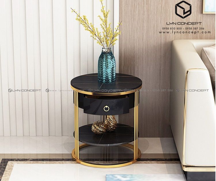 Bàn Góc Sofa Có Hộc Kéo Màu Đen Chân Sắt Sơn Vàng - BT198.5