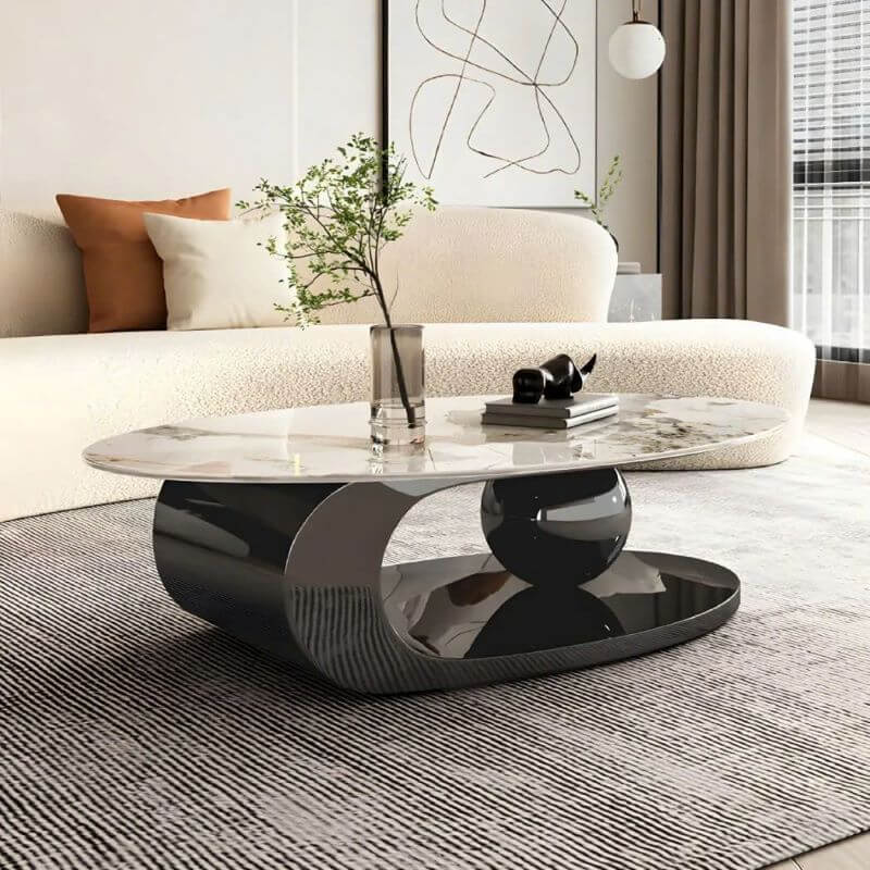 Bàn Trà Sofa Elip Mặt Đá Trắng Chân Inox Mạ Pvd Đen - BT22E2 ( XEM LINK SẢN PHẨM TẠI ĐÂY )
