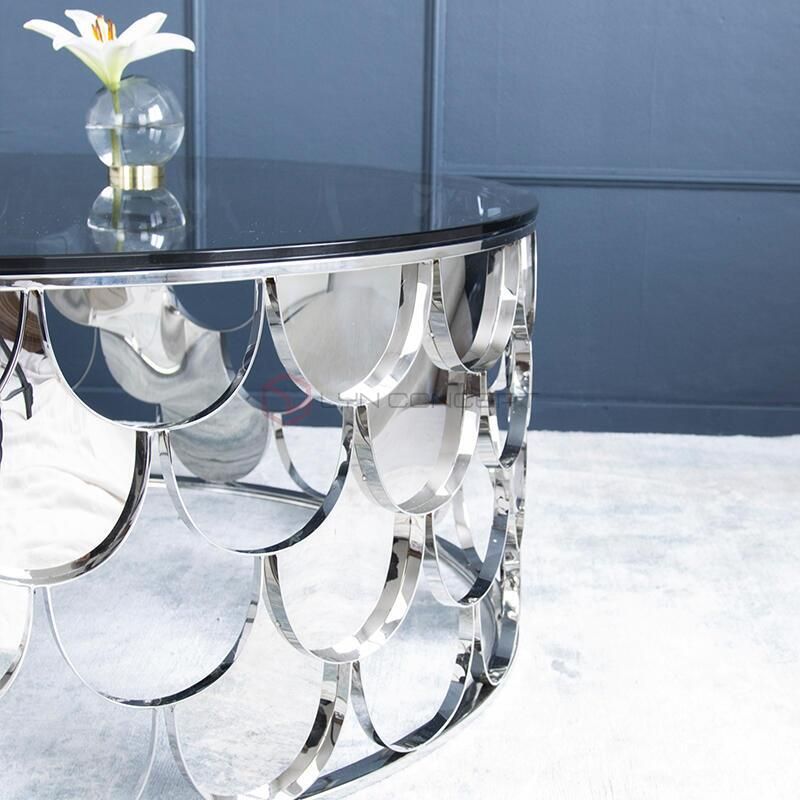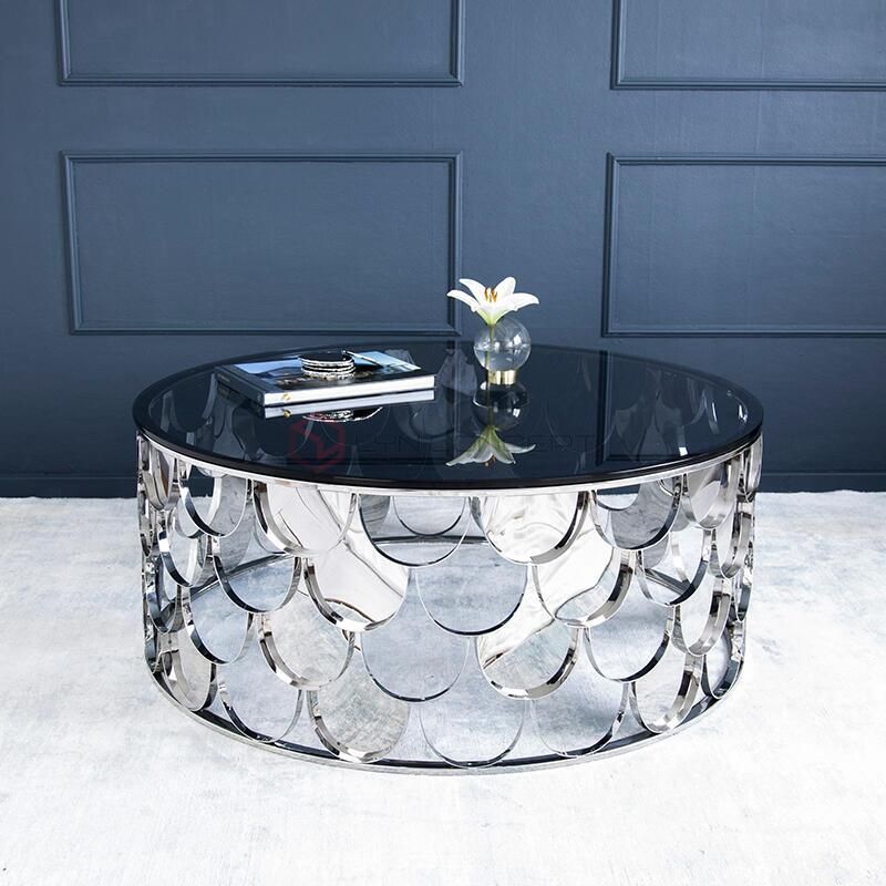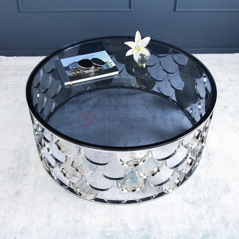 Chất liệu: Mặt bàn kính cường lực 8mm màu đen-Chân inox 304 mạ PVD