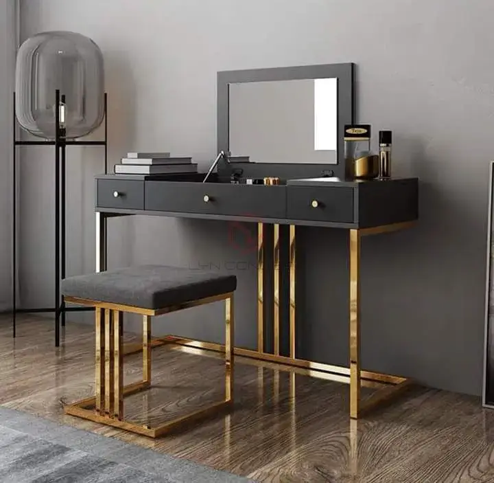 Một chiếc bàn trang điểm cao cấp không chỉ giúp bạn chăm sóc bản thân mà còn nâng tầm không gian sống. Nếu bạn đang tìm kiếm sản phẩm vừa đẹp, vừa chất lượng và thể hiện được phong cách cá nhân – hãy khám phá các mẫu bàn trang điểm chân inox mạ vàng tại LYN CONCEPT. [link xem chi tiết sản phẩm]
