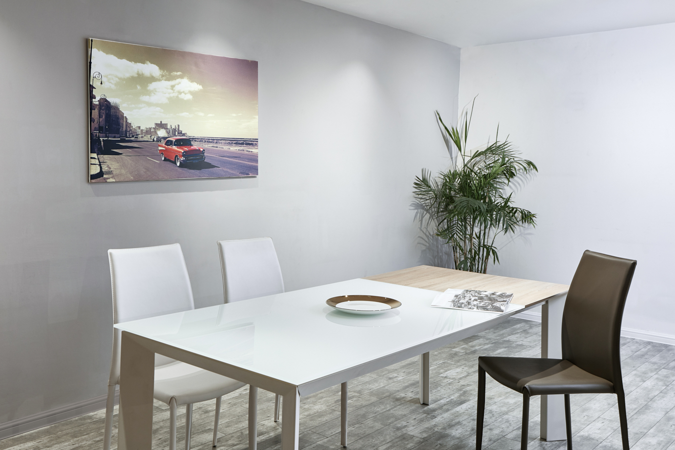 Chất liệu: Bàn mở rộng kính phối màu gỗ Laminate