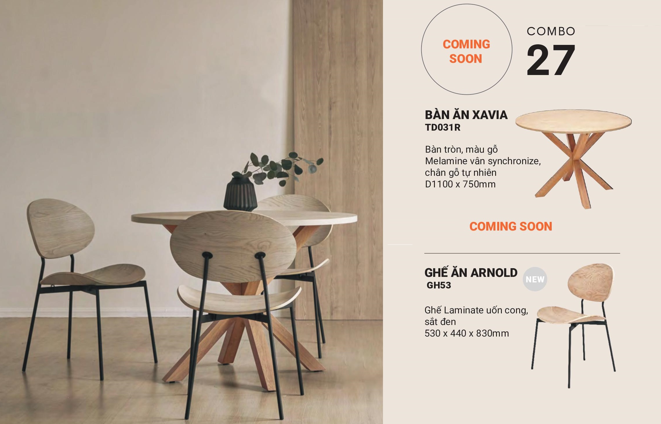 Chất liệu: Bàn tròn, màu gỗ Melamine vân synchronize, chân gỗ tự nhiên