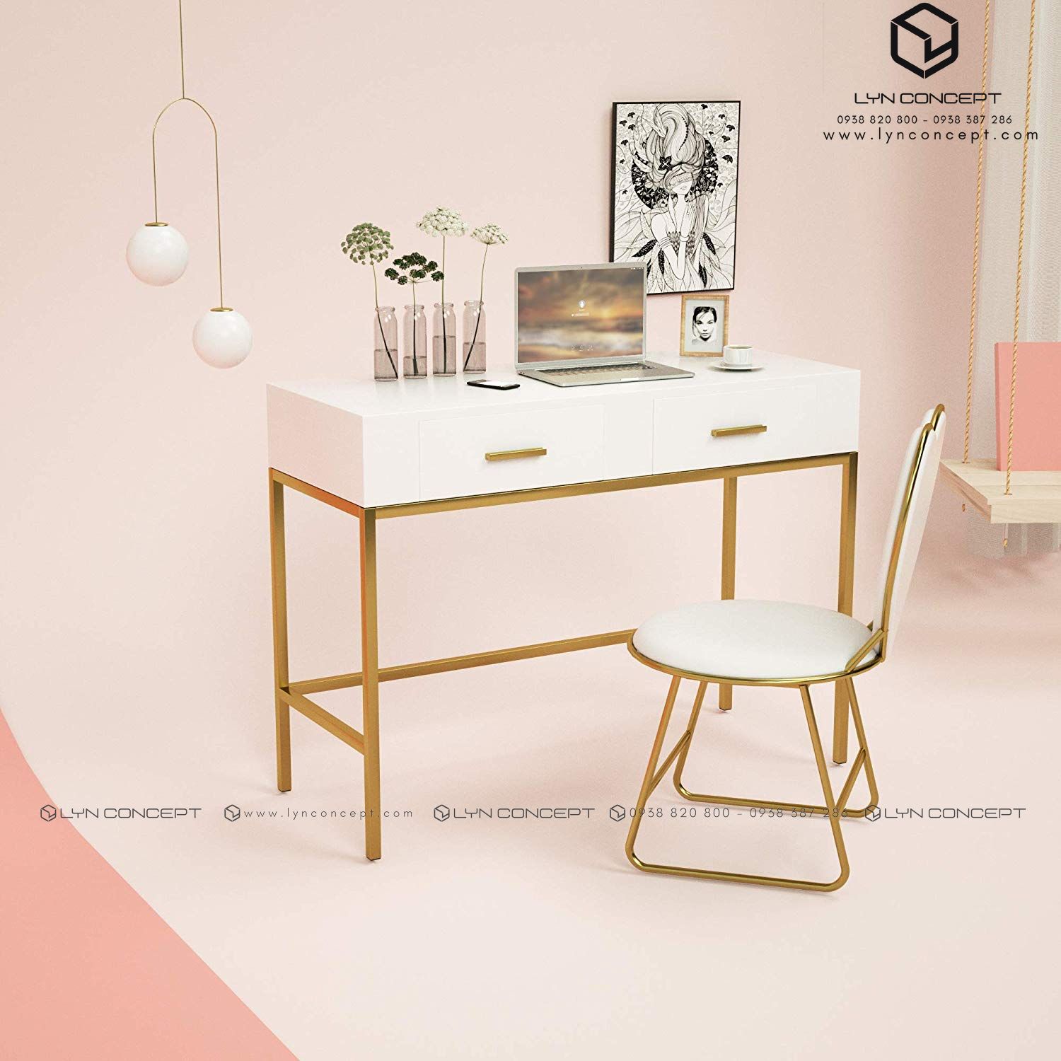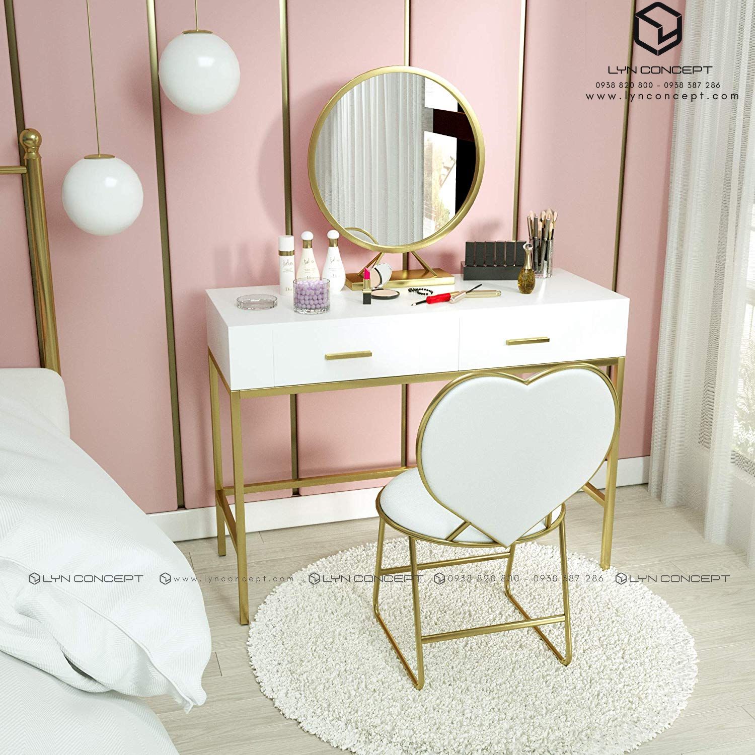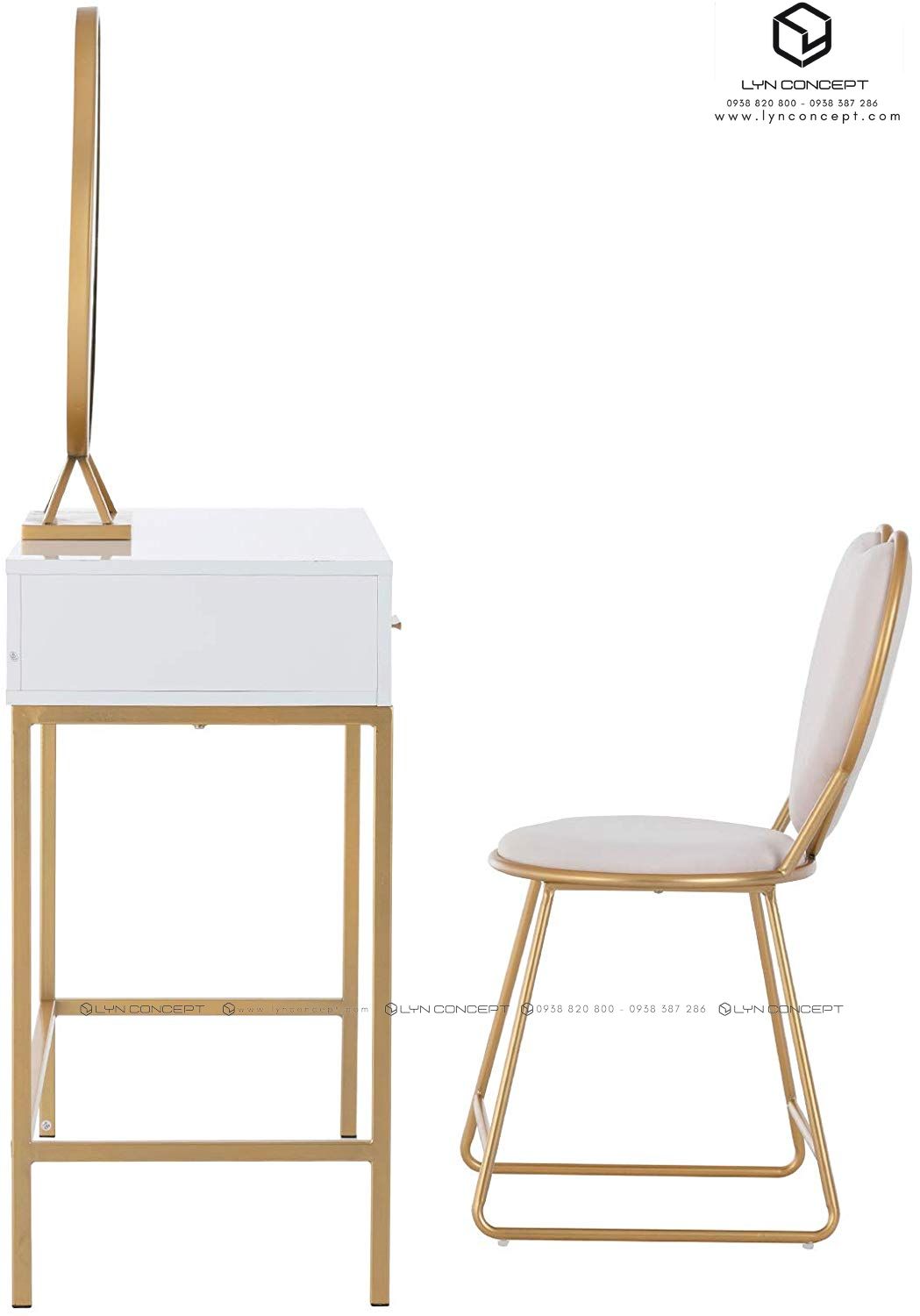 Đến với nội thất LYN CONCEPT chắc chắn bạn sẽ ưng ý với những mẫu bộ bàn trang điểm chân sắt làm mưa làm gió trên thị trường đáp ứng nhu cầu sử dụng của chị em phụ nữ. Những mẫu bộ bàn trang điểm chân sắtthông minh tại LYN CONCEPT luôn là những sản phẩm đứng top với thiết kế độc đáo, pha màu lạ mắt và vẫn rất “trendy”.