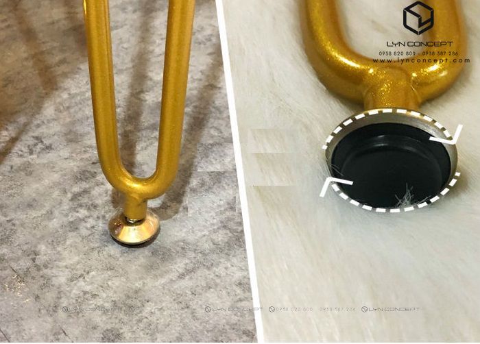 - Vật liệu: Gỗ công nghiệp MDF lõi xanh sơn 2K bóng hoặc mờ - Chân sắt sơn vàng
