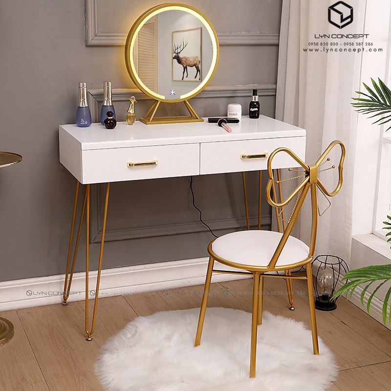 Đến với nội thất LYN CONCEPT chắc chắn bạn sẽ ưng ý với những mẫu bộ bàn trang điểm chân sắt làm mưa làm gió trên thị trường đáp ứng nhu cầu sử dụng của chị em phụ nữ. Những mẫu bộ bàn trang điểm chân sắtthông minh tại LYN CONCEPT luôn là những sản phẩm đứng top với thiết kế độc đáo, pha màu lạ mắt và vẫn rất “trendy”.