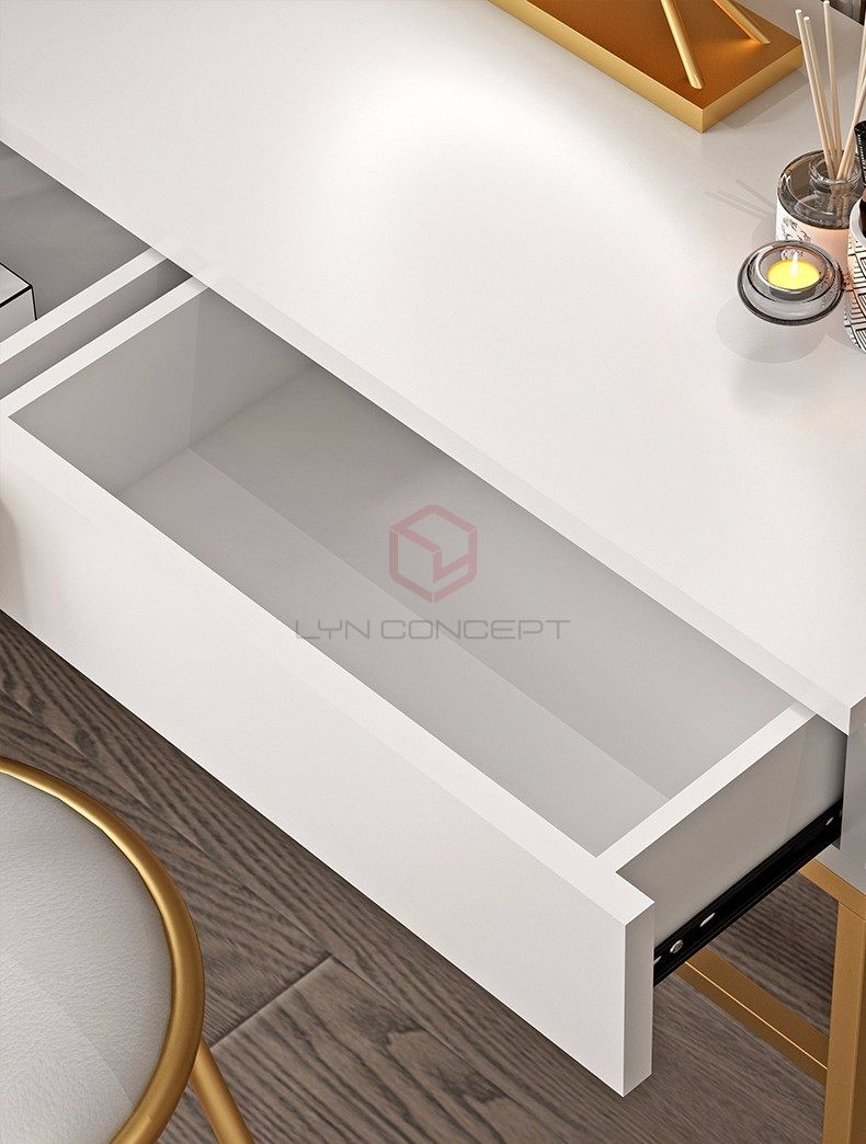 Khi mua bàn trang điểm tại LYN CONCEPT, bạn sẽ tìm thấy nhiều kích thước bàn trang điểm từ mini, nhỏ gọn cho tới khổ lớn, chất liệu sử dụng linh hoạt từ sắt, inox và gỗ tự nhiên như gỗ cao su, gỗ thông, gỗ sồi v...v. thực sự trở thành là người bạn đồng hành trong việc chăm sóc, làm đẹp của bạn.