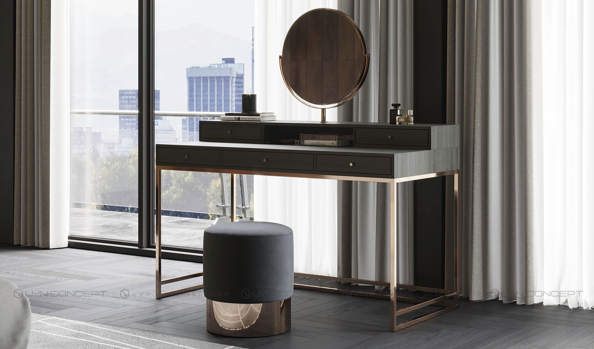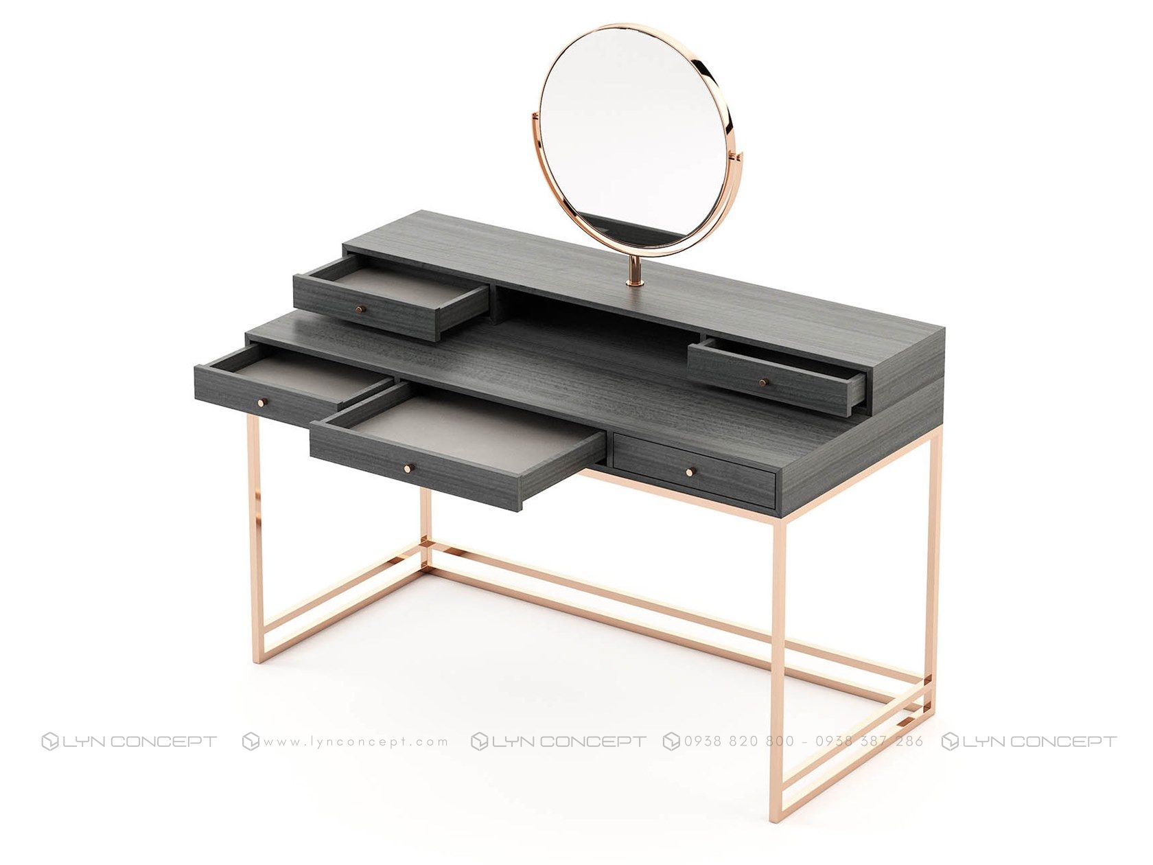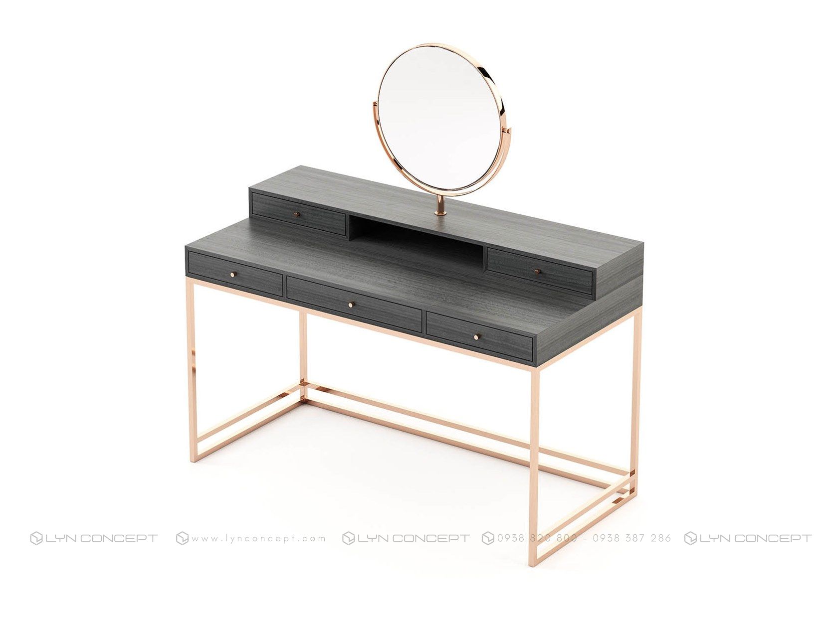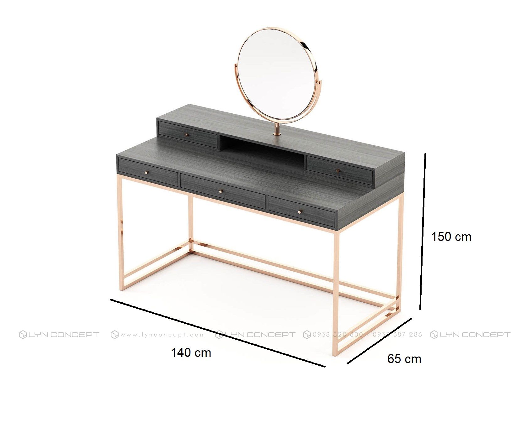 Khi mua bàn trang điểm tại LYN CONCEPT, bạn sẽ tìm thấy nhiều kích thước bàn trang điểm từ mini, nhỏ gọn cho tới khổ lớn, chất liệu sử dụng linh hoạt từ sắt, inox và gỗ tự nhiên như gỗ cao su, gỗ thông, gỗ sồi v...v. thực sự trở thành là người bạn đồng hành trong việc chăm sóc, làm đẹp của bạn.