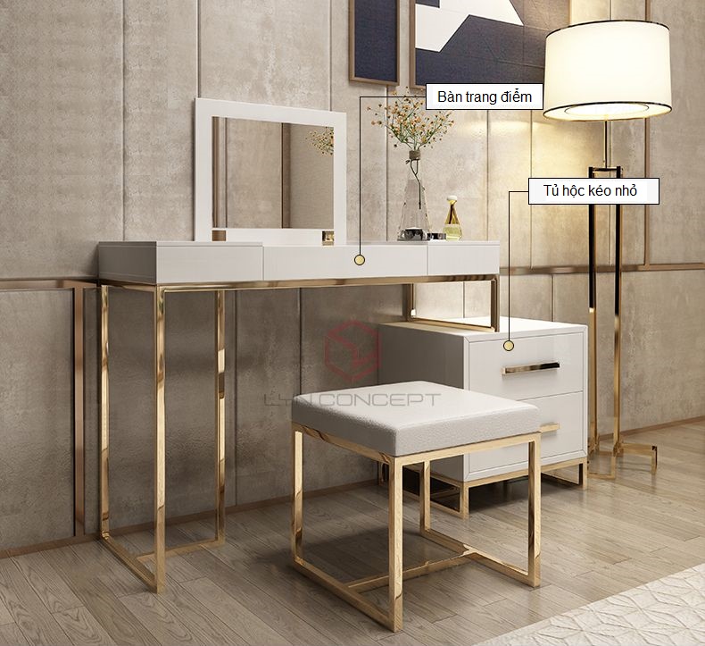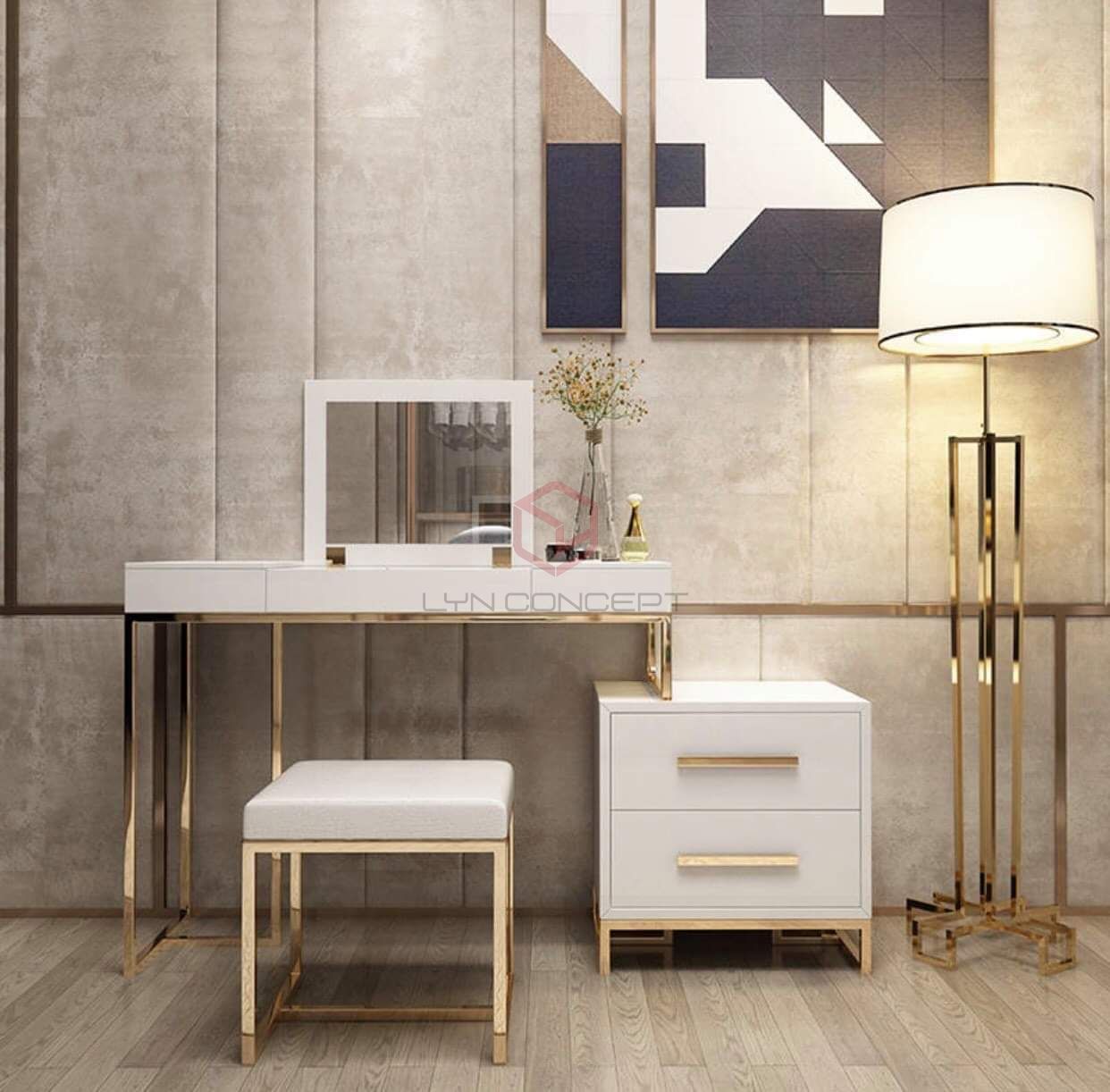 Khi mua bàn trang điểm tại LYN CONCEPT, bạn sẽ tìm thấy nhiều kích thước bàn trang điểm từ mini, nhỏ gọn cho tới khổ lớn, chất liệu sử dụng linh hoạt từ sắt, inox và gỗ tự nhiên như gỗ cao su, gỗ thông, gỗ sồi v...v. thực sự trở thành là người bạn đồng hành trong việc chăm sóc, làm đẹp của bạn.