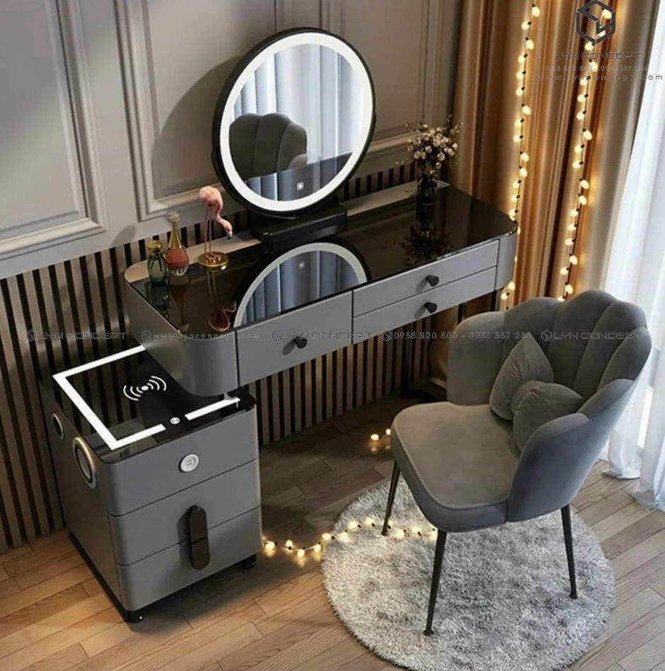 Bộ bàn trang điểm nhập khẩu thông minh là món đồ nội thất có ý nghĩa rất đặc biệt đối với các “tín đồ” yêu thích makeup và là một trong những món đồ không thể thiếu trong phòng ngủ của chị em phụ nữ hiện đại ngày nay. Bộ bàn trang điểm nhập khẩu thông minh cũng là một phần quan trọng giúp trang trí cho căn phòng ngủ thêm phần thanh lịch và ấn tượng hơn.