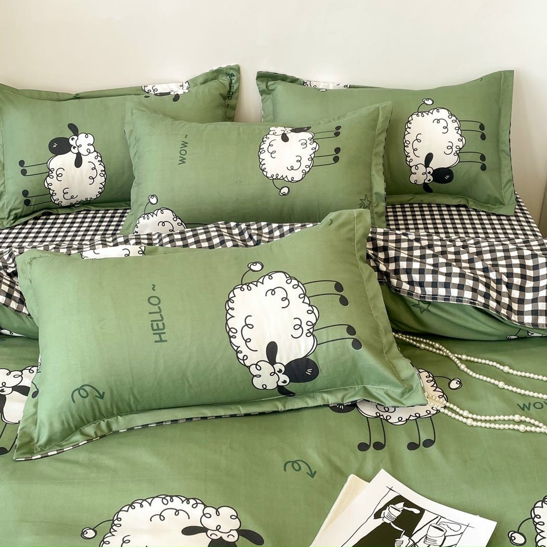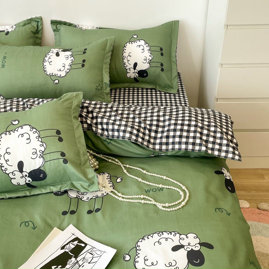Bộ Chăn Ga Gối 5 Món Cotton Poly Hàn Quốc In Hình Còn Cừu Trắng Phối Màu Xanh - CP08