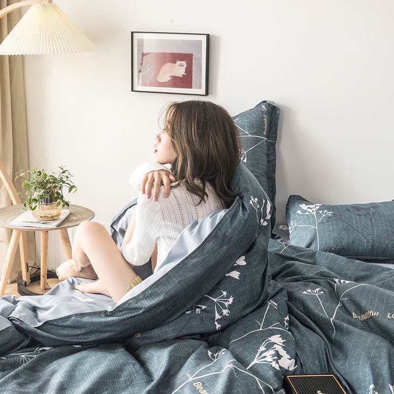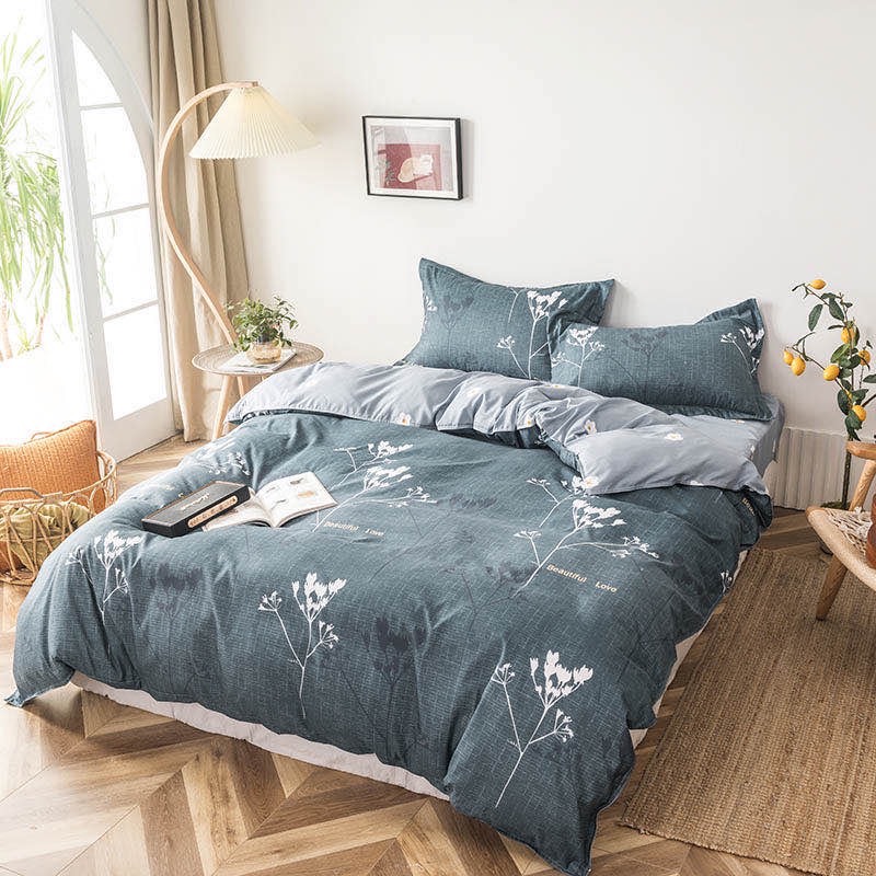 Bộ Chăn Ga Gối 5 Món Cotton Poly Hàn Quốc In Hình Nhánh Cây Phối Trên Nền Màu Xám - CP37