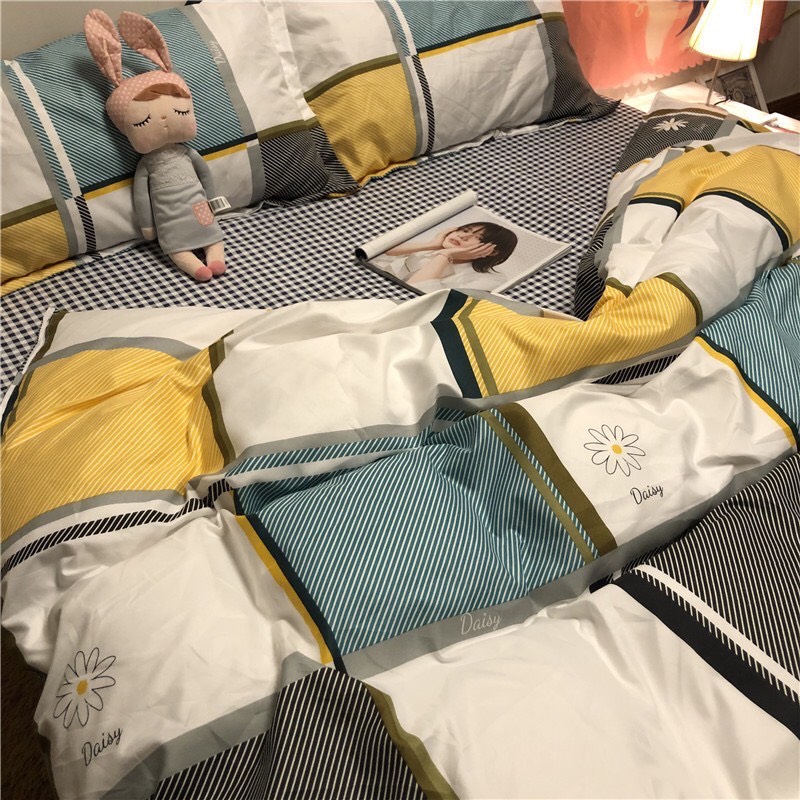 Bộ Chăn Ga Gối 5 Món Cotton Poly Hàn Quốc In Hình Ô Vuông Phối Nhiều Màu- CP50