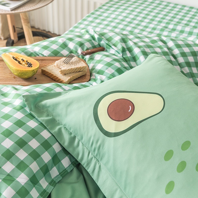 Bộ Chăn Ga Gối 5 Món Cotton Poly Hàn Quốc In Hình Trái Bơ Phối Trên Nền Màu Xanh - CP33