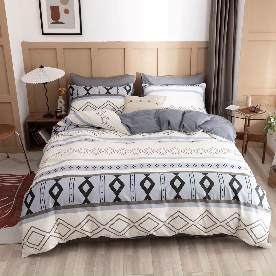 Bộ Chăn Ga Gối Cotton 100% Hàn Quốc In Hình Họa Tiết Hoa Văn Phối Trên Nền Màu Trắng Xám - CT09