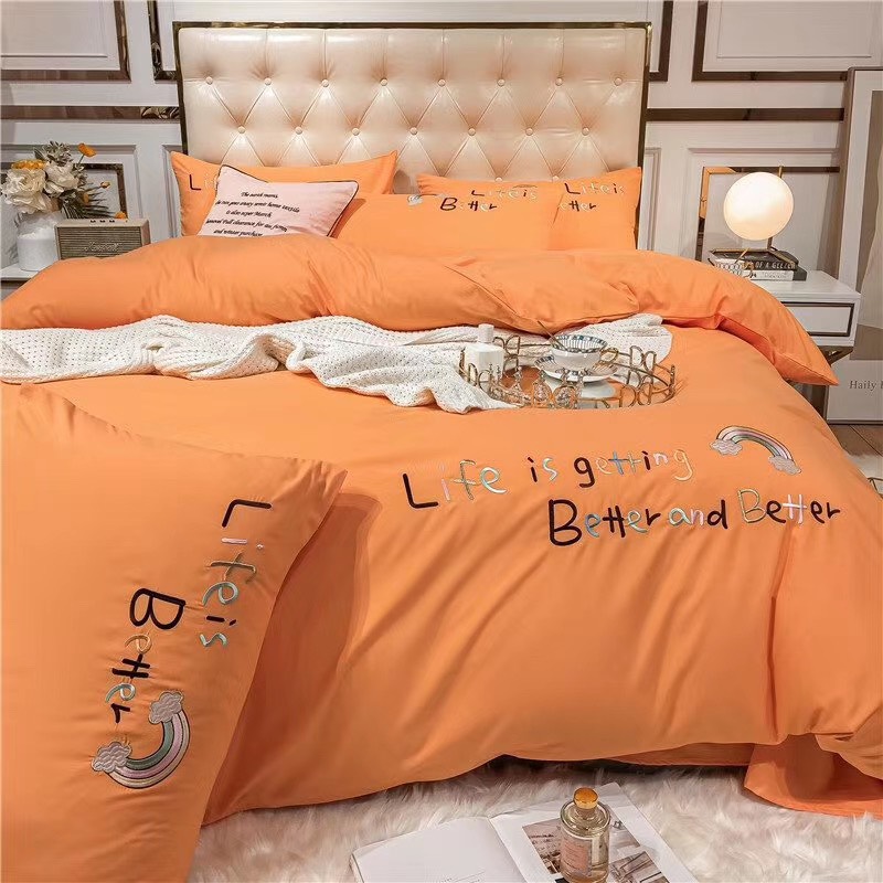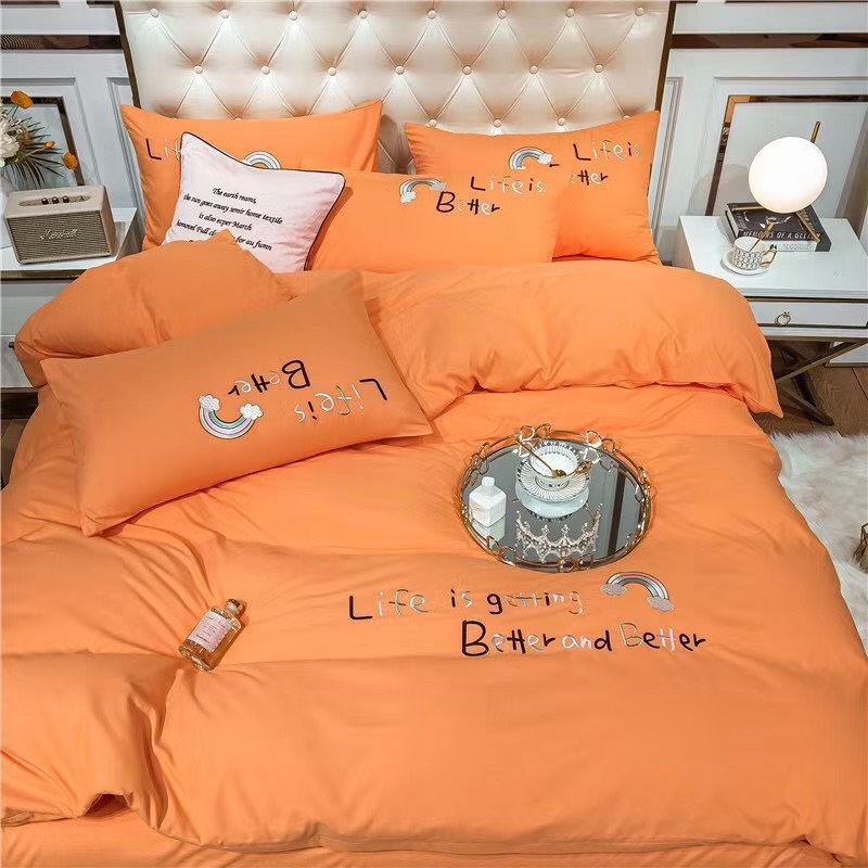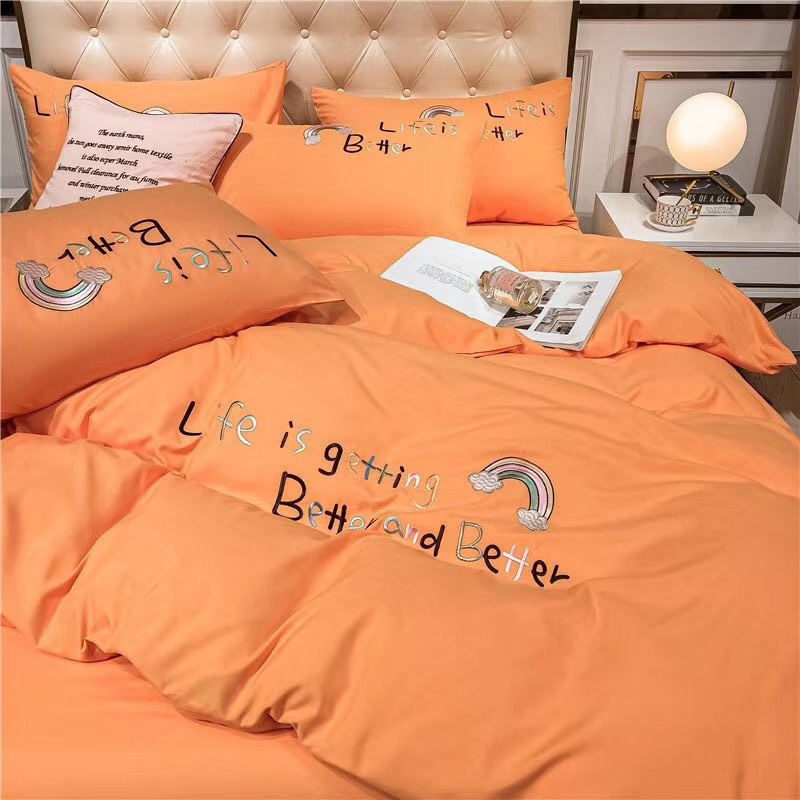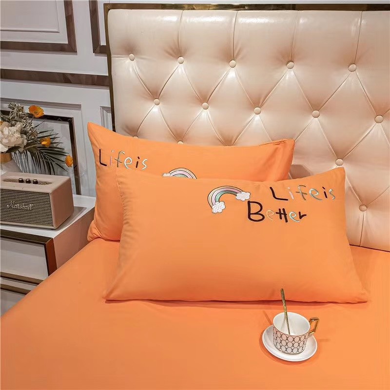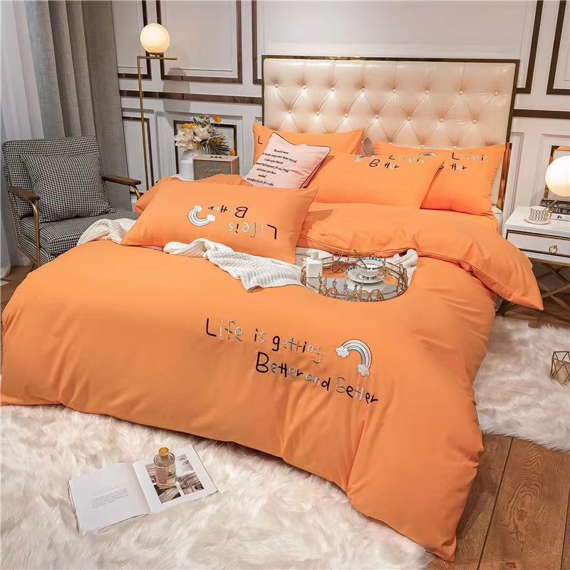 Bộ Chăn Ga Gối Cotton 30s Hàn Quốc In Hình Cầu Vồng Phối Trên Nền Màu Cam - CT30S.03