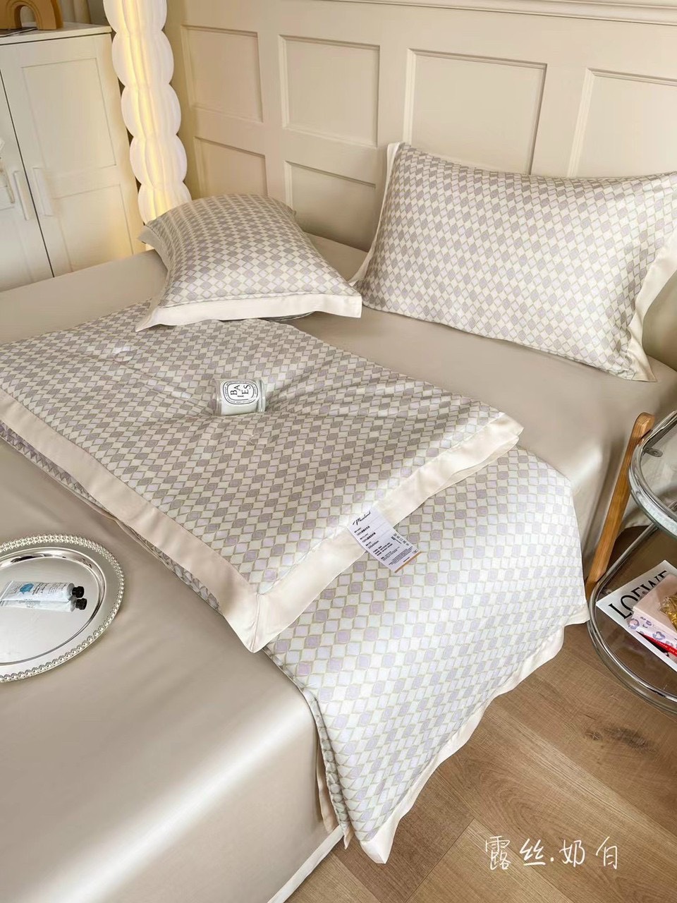 Bộ Chăn Ga Gối Lụa Tencel Nền Màu kem In Hình Ô Vuông Nhỏ Đan Xen Lạ Mắt - LTC22