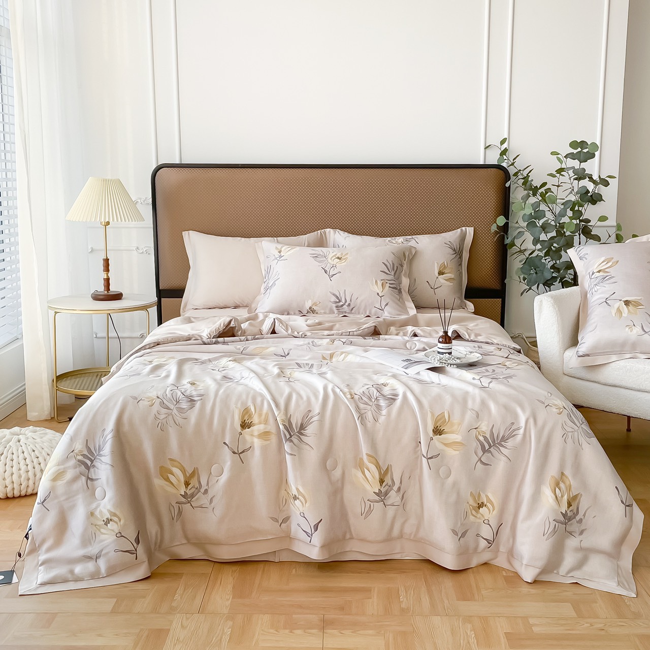 - Chất liệu: Chất vải lụa Tencel siêu mềm mại, mịn, mát, một trong những chất liệu vải mềm nhất trong bộ sưu tập chăn ga gối cao cấp. Vải Tencel có cấu tạo và đặc tính gần như vải cotton nhưng có thêm ưu điểm như không bị co rút sợi. Có tính năng hấp thụ độ ẩm trên cả tuyệt vời, mồ hôi không khí ẩm được thấm hút nhanh vào bên trong sợi và nhanh chóng tỏa ra không khí xung quanh nên không gây ra độ ẩm quá mức trên da, giúp người sử dụng cảm thấy thoải mái nhất. Sản phẩm có đường may khéo léo, chắc chắn, mang lại sự thoải mái, an toàn và thân thiện với người sử dụng
