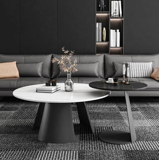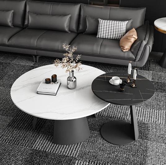 Bàn Sofa Tròn Đôi Marisa kết hợp hoàn hảo giữa mặt đá và chân sắt chắc chắn