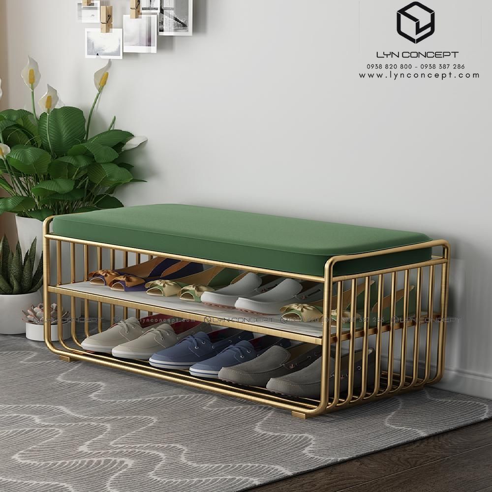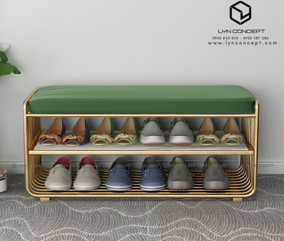 Ghế Ngồi Mang Giày 2 Tầng Màu Xanh Lá Chân Sắt Sơn Vàng - GMG18.2