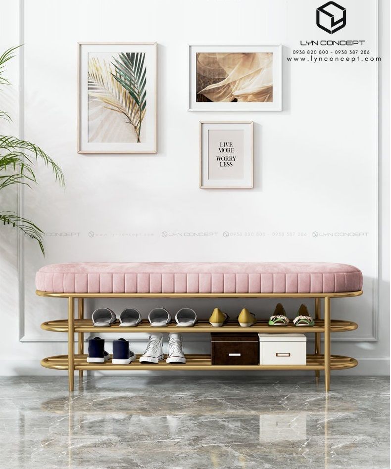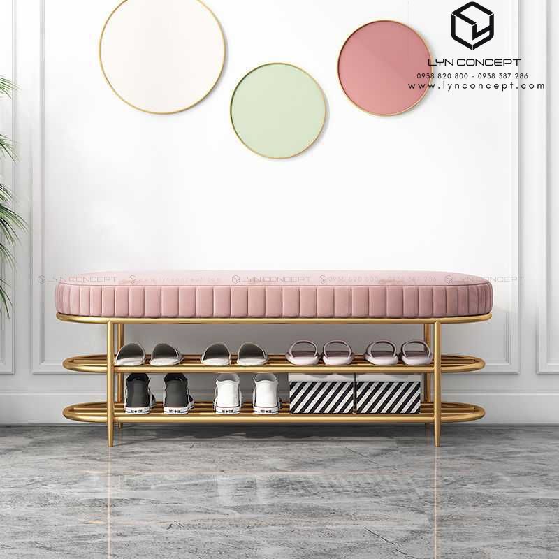 Ghế Ngồi Mang Giày Màu Hồng Chân Sắt Vàng - GMG02B.1
