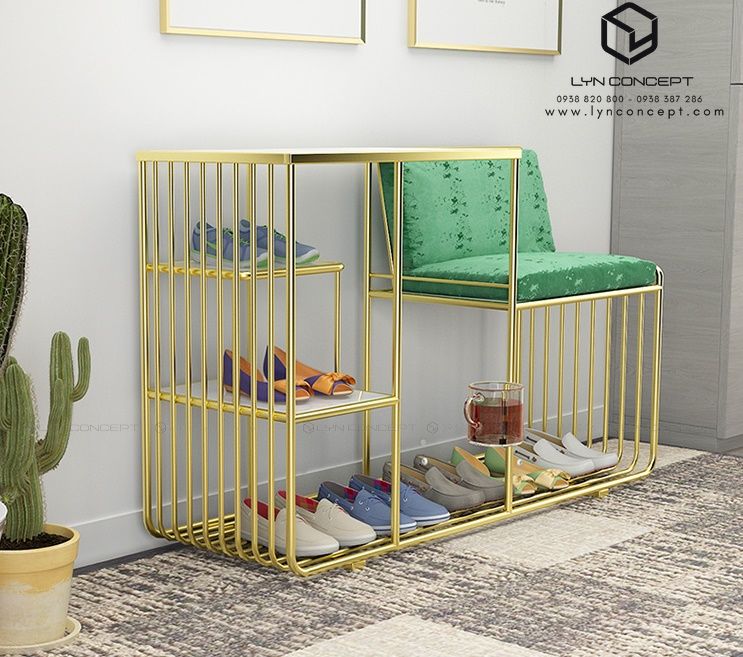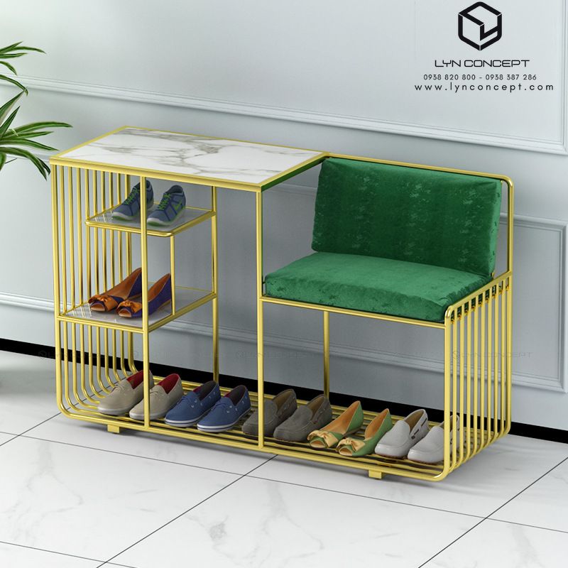 Ghế Ngồi Mang Giày Màu Xanh Chân Sắt Vàng - GMG12.3