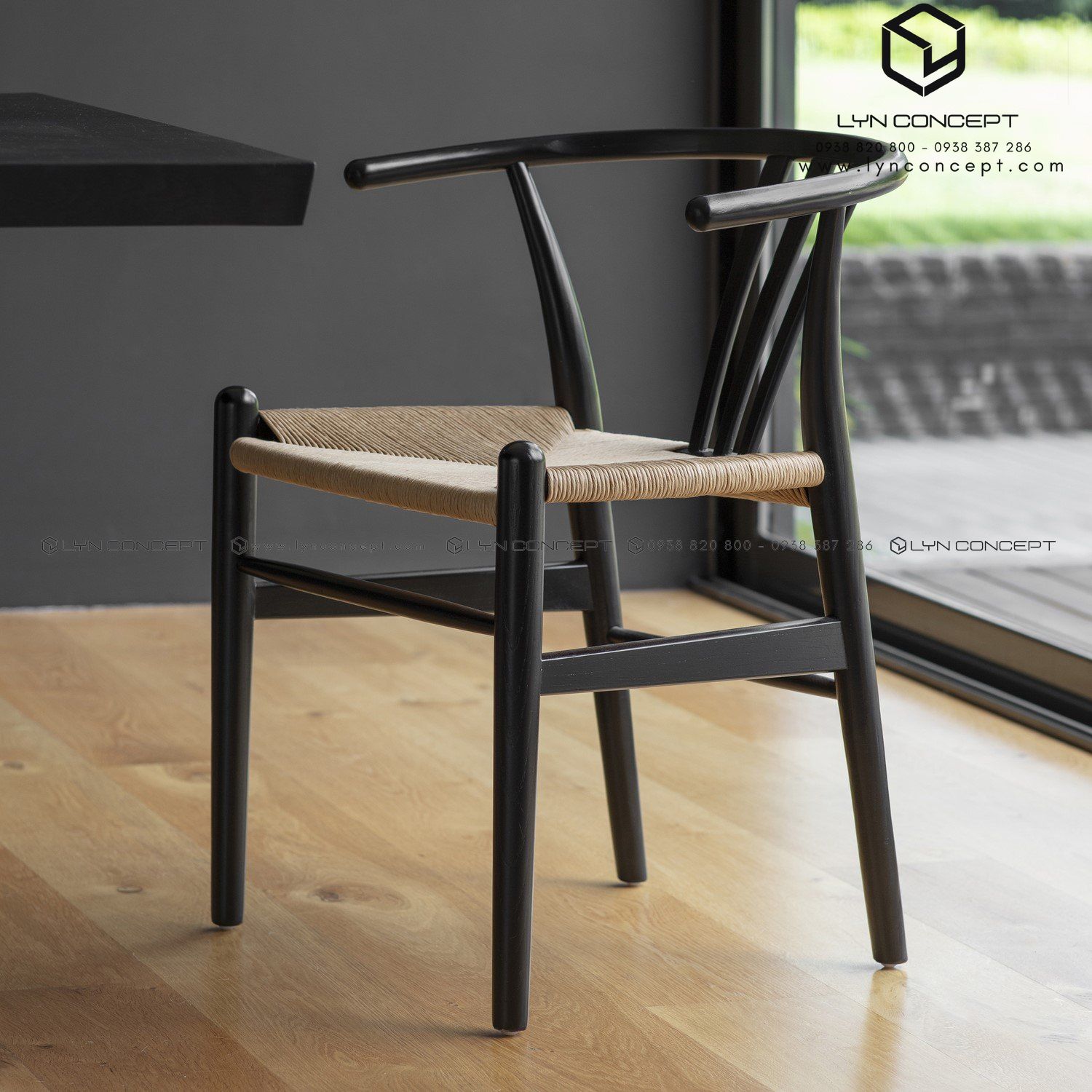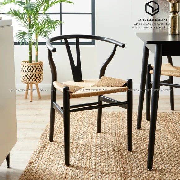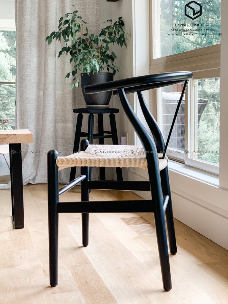 Ghế ăn Wishbone được làm từ gỗ Ash (tần bì) tự nhiên sơn đen với miếng đệm được đan thủ công bằng tay bởi những sợi dây mỏng nhẹ. Tạo cho bạn sự chắc chắn và thoải mái khi ngồi.