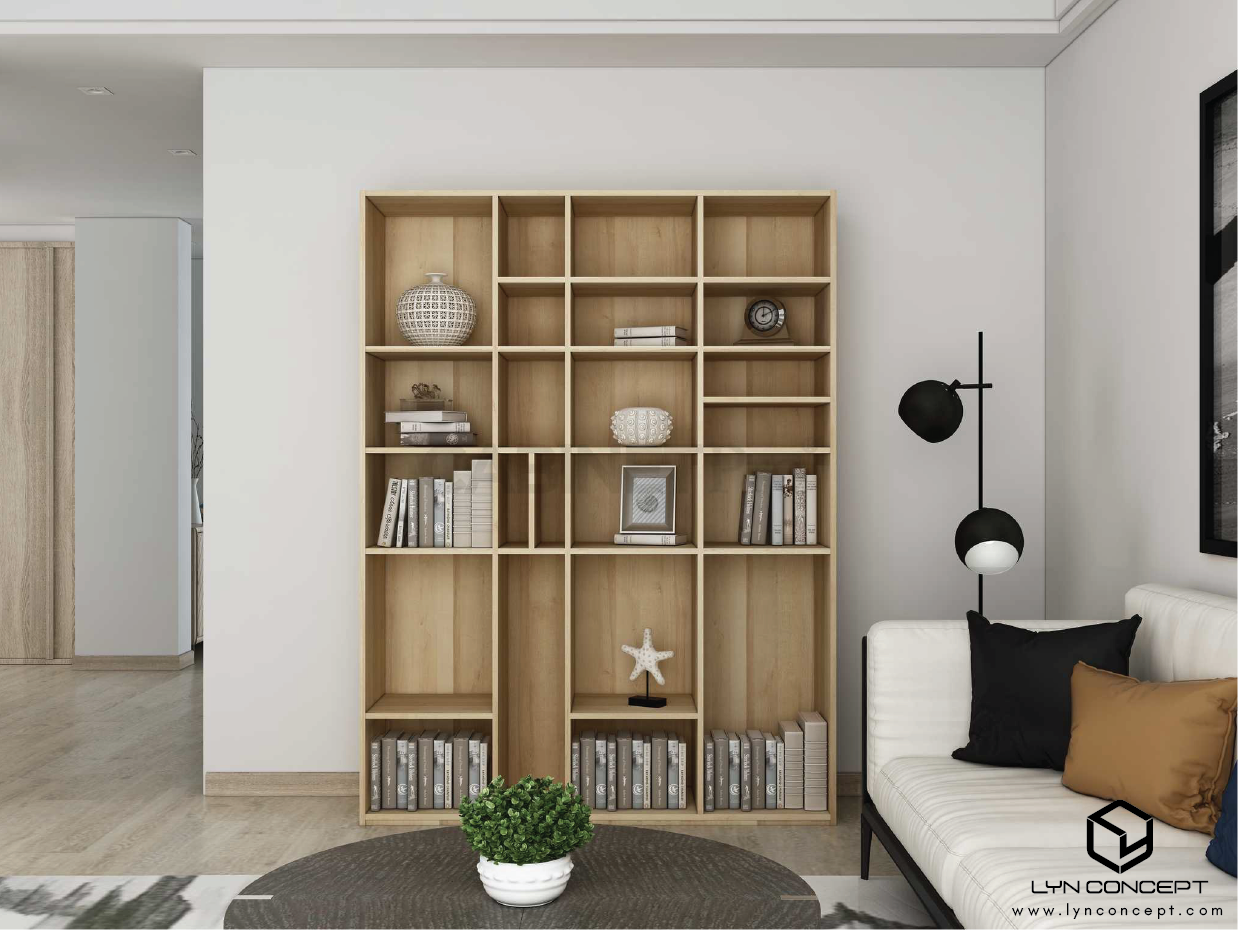 - Kích thước kệ sách: tùy theo kích thước phòng khách