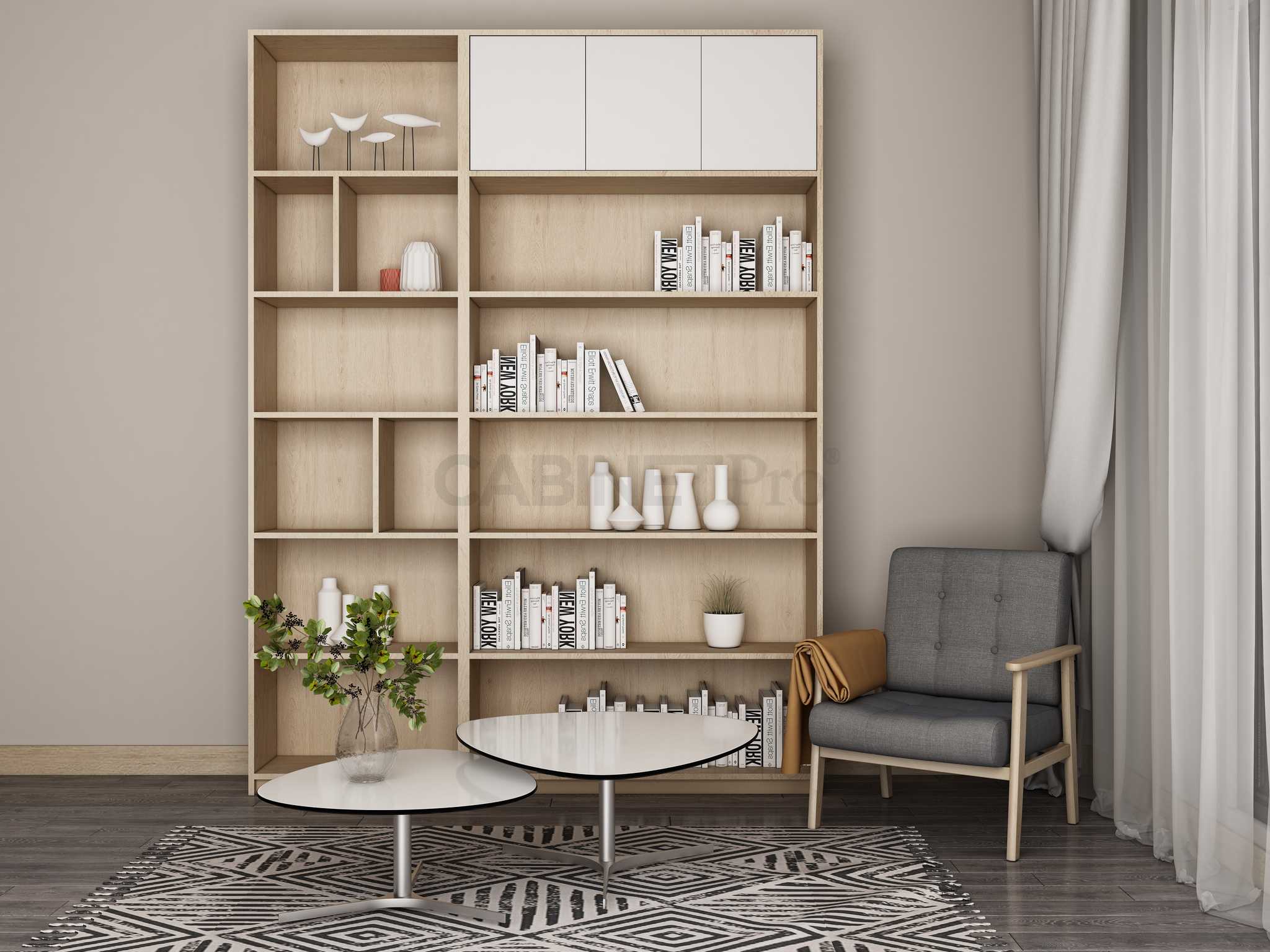 - Kích thước kệ sách: tùy theo kích thước phòng khách