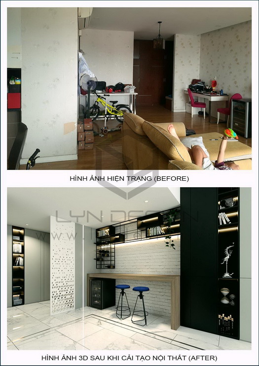 HÌNH ẢNH SO SÁNH TRƯỚC VÀ SAU KHI CĂN HỘ EVVERICH 2 ĐƯỢC THIẾT KẾ CẢI TẠO NỘI THẤT CĂN HỘ