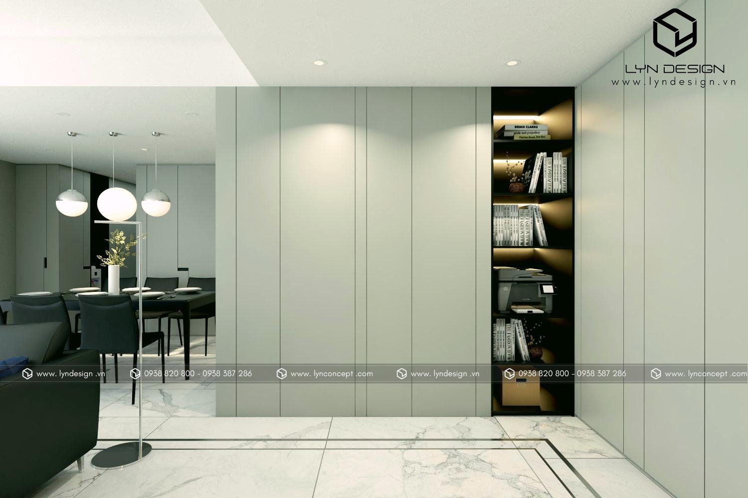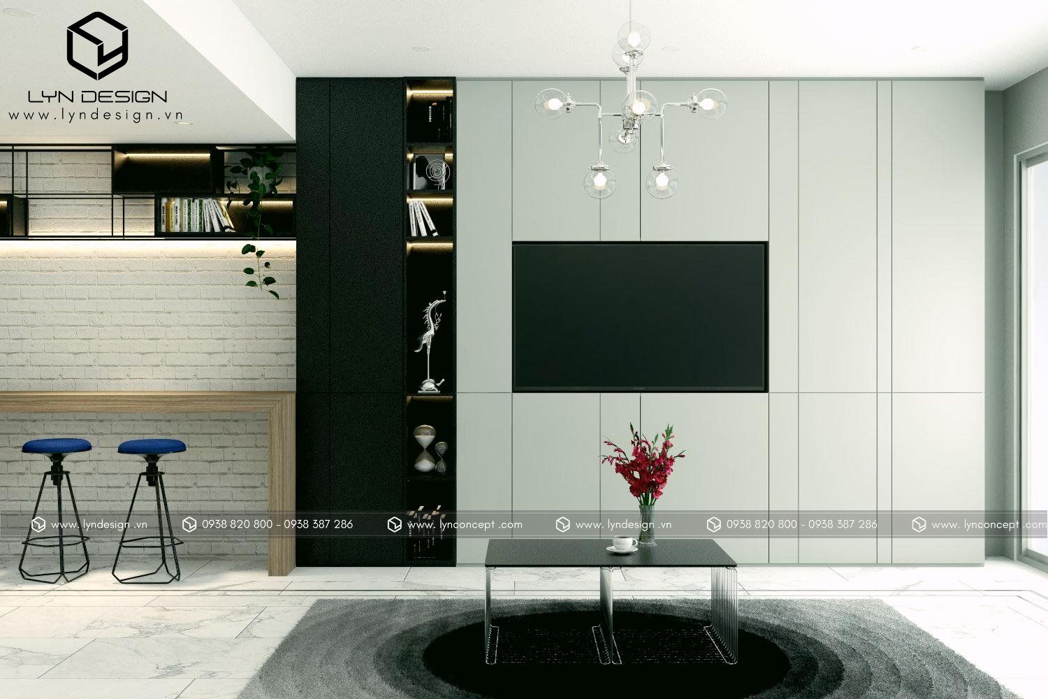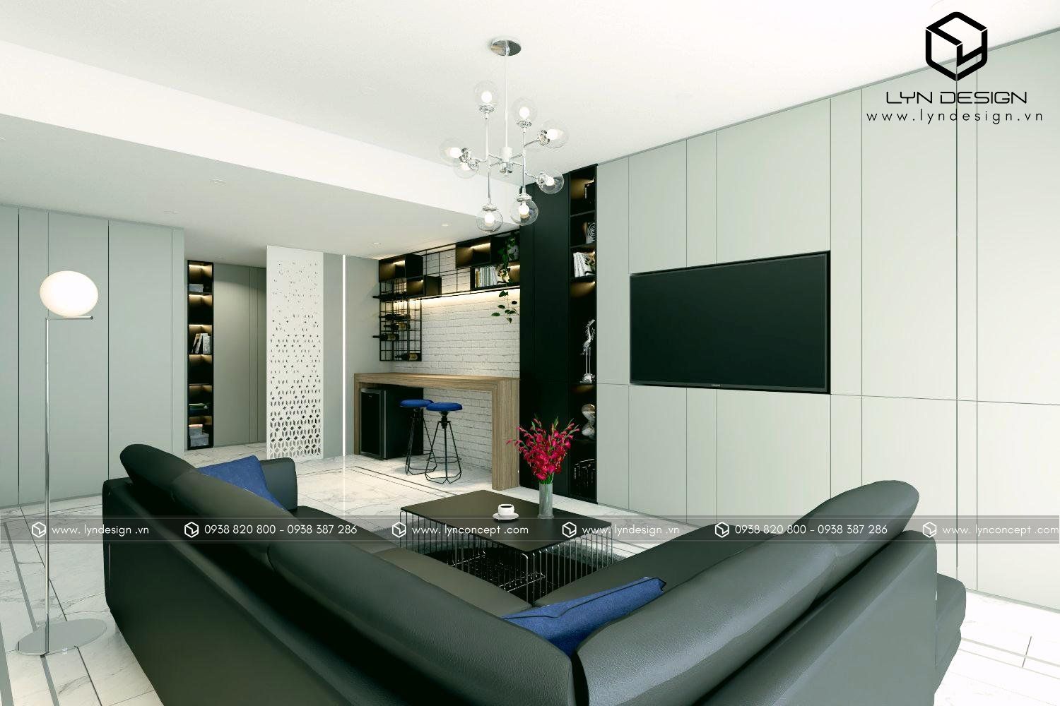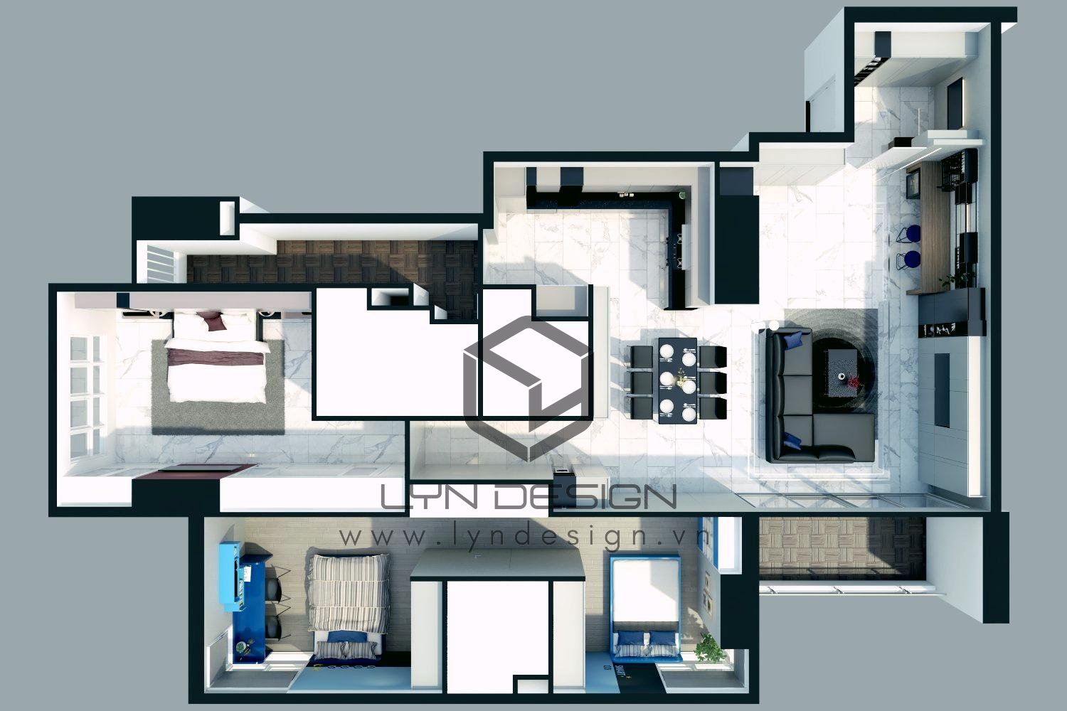Căn hộ rộng 106m2 này được LYN Design thiết kế theo phong cách hiện đại với ưu điểm là vẫn có độ thẩm mỹ nhất định nhưng không rườm rà, nhiều chi tiết. Không gian đẹp từ cách cách bố trí trong không gian, thể hiện tinh thần hiện đại tiện nghi nhưng vẫn tối giản. Trong thiết kế này LYN Design đã chọn phương án thay vì tập trung quá nhiều vào trang trí thì sẽ chú trọng đến bố cục và chọn nội thất phù hợp với không gian nhằm tối ưu công năng cho toàn bộ căn nhà. Để thấy rõ sự tinh tế trong thiết kế nội thất mà LYN Design mang đến cho bạn xin mời các bạn cùng tham khảo mẫu thiết kế nội thất căn hộ 106m2 The Everrich 2 dưới đây.