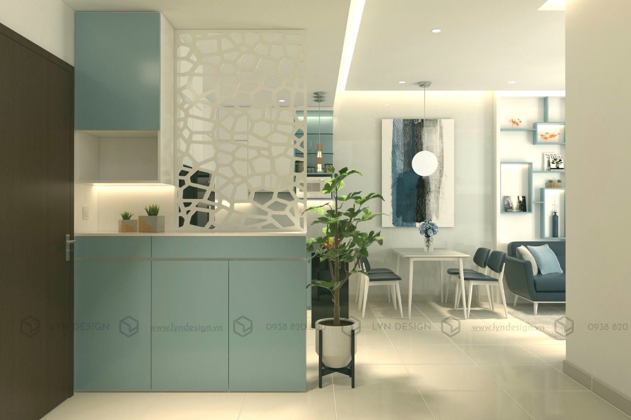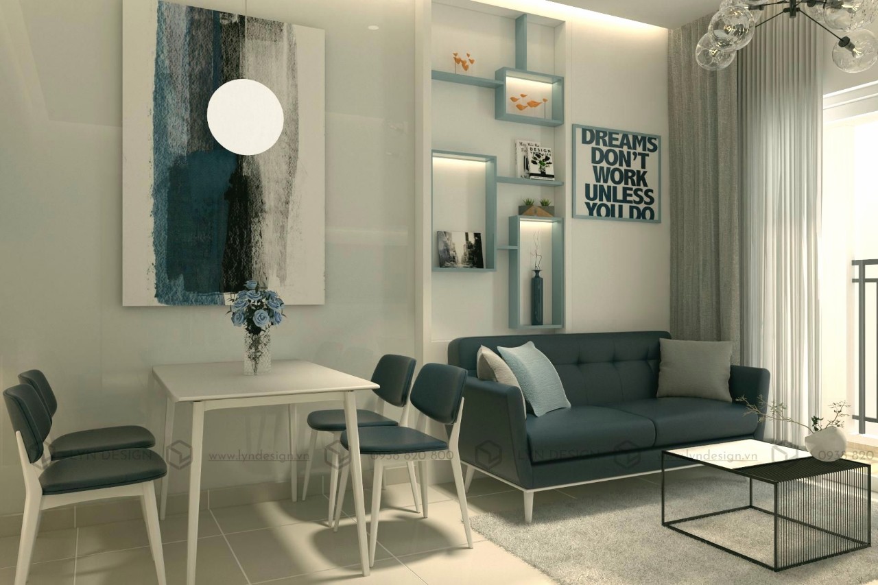 Đơn giản – Không cầu kỳ – Đầy đủ công năng – Thẩm mỹ – đây là những tiêu chí dành cho căn hộ 70m2 với 2 phòng ngủ này. Để đáp ứng được nhu cầu của gia chủ căn hộ, LYN Design tư vấn thiết kế nội thất căn hộ Sunrise Riverside theo phong cách Hiện đại.