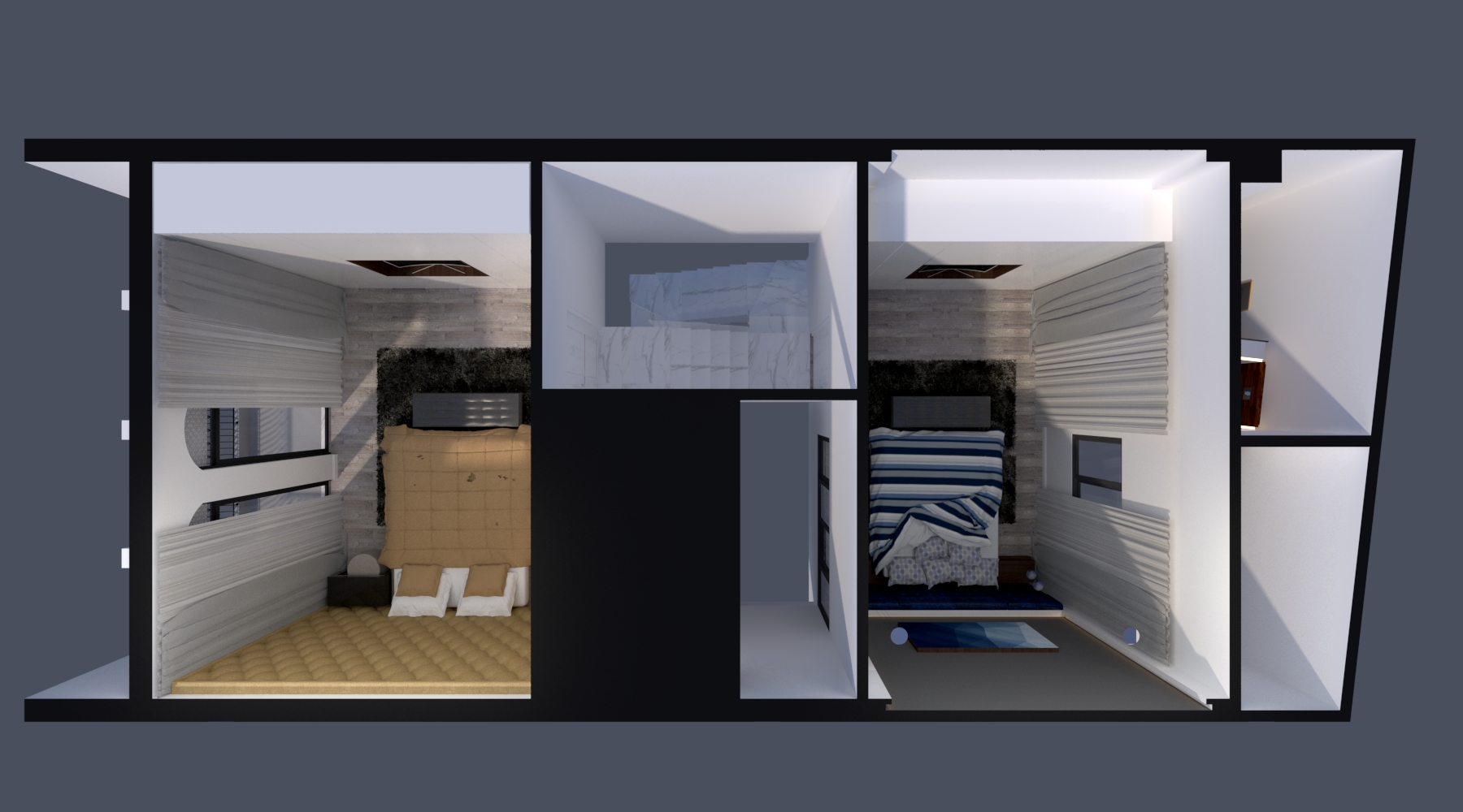 Căn phòng được thiết kế đơn giản với tone màu trầm ấm, không gian vừa đủ, không quá rộng vì dễ mang đến cảm giác trống trải.