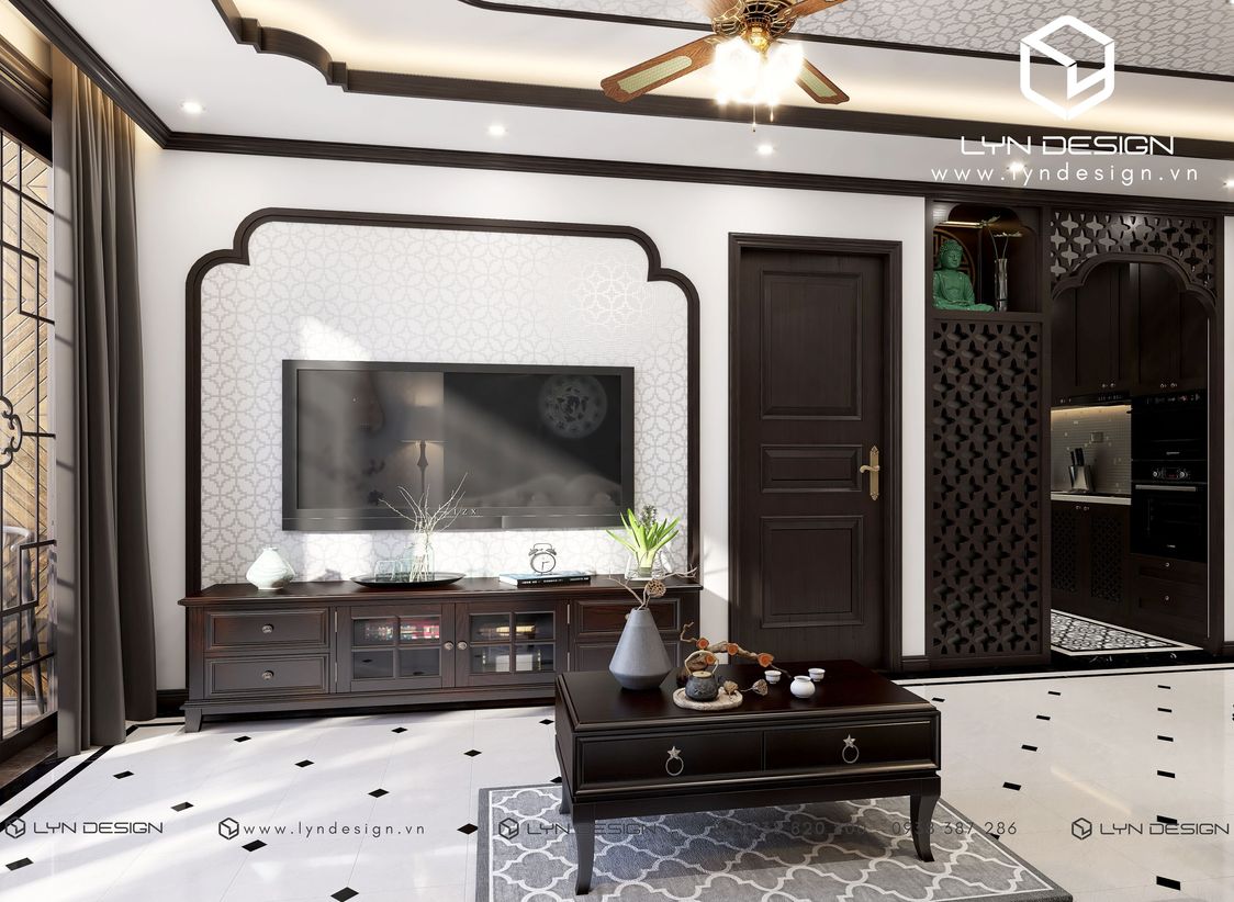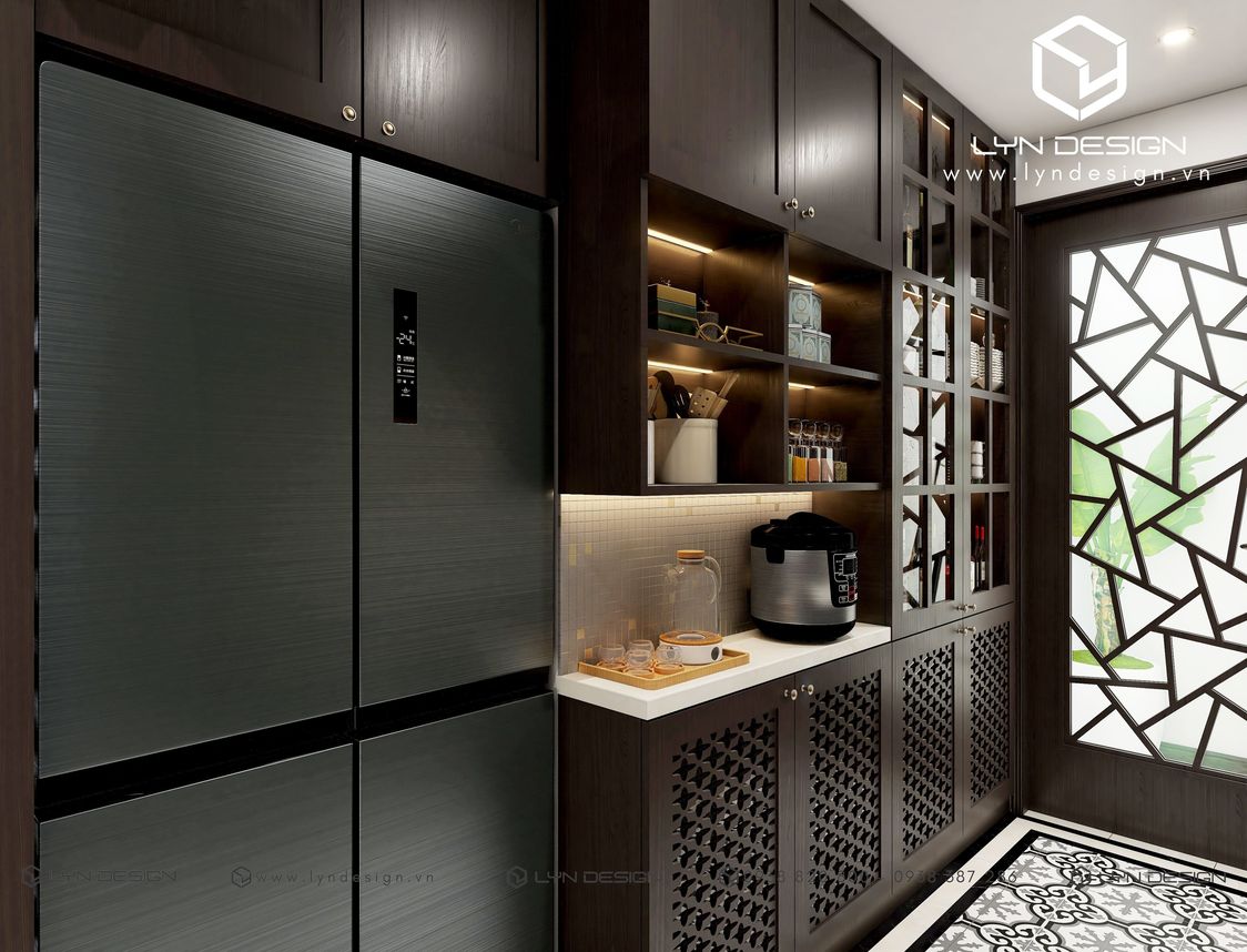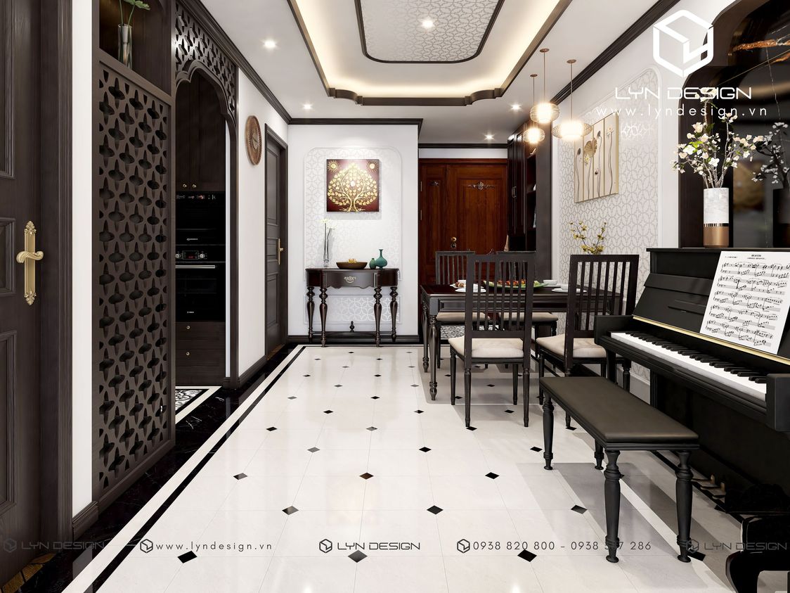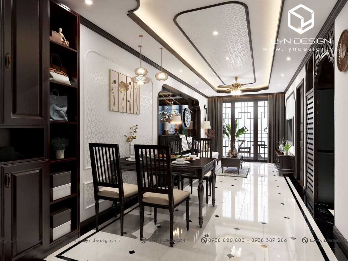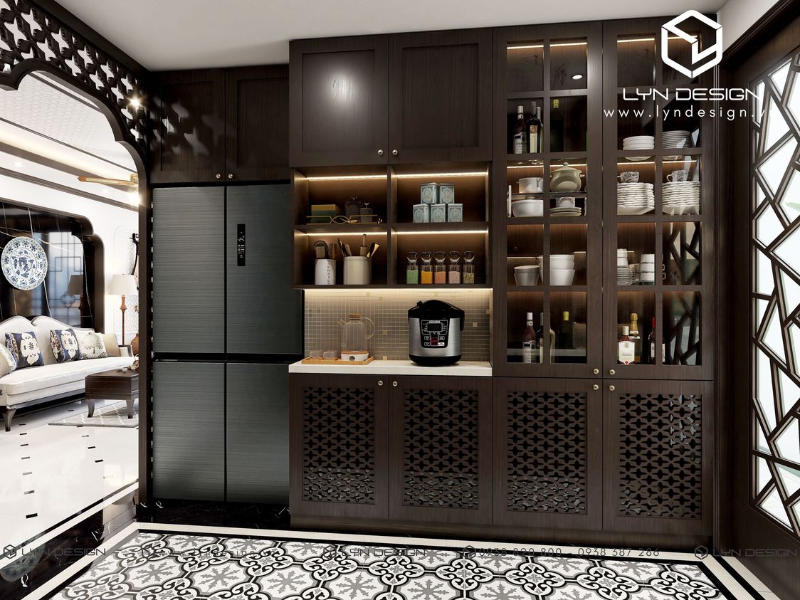 Yêu cầu thiết kế của Gia Chủ là để ở nên tiêu chí đưa ra là cần nhiều không gian và côn năng cho sinh hoạt hàng ngày. Từ tủ để đồ đến khu vực bếp nấu, tiếp khách, nơi nghỉ ngơi cũng phải tiện nghi. Tiêu chí này tưởng chừng như khó ăn khớp với phong cách Indochine. Vì phong cách yêu cầu nhiều chi tiết và thiên về chất liệu gỗ, phát huy tốt nhất ở diện tích rộng. Trước bài toán đó, kiến trúc sư của LYN Design & LYN Concept đã tiết chế chi tiết, sắp xếp mặt bằng phù hợp với nhu cầu ở hàng ngày nhưng vẫn đảm bảo tinh thần chủ đạo của phong cách Indochine.