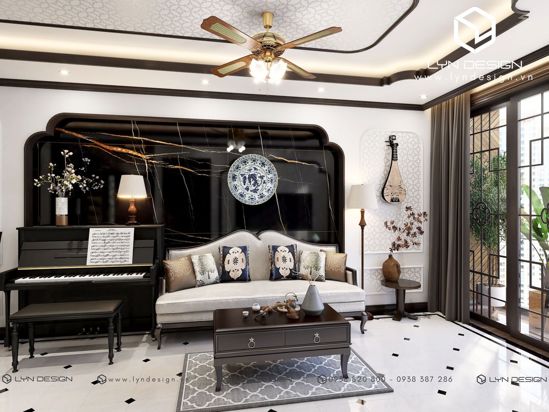 Mẫu thiết kế căn hộ này là sự giao thoa tuyệt vời của vẻ đẹp văn hóa Á Đông cùng nét lãng mạn của kiến trúc Pháp, chủ yếu sử dụng nội thất hoài cổ, mang nét đẹp của không gian xưa. Nhìn chung, tổng thể căn hộ gợi cảm giác sang trọng, tinh tế nhưng cũng không kém phần hoài cổ và hiệu ứng kích thích thị giác tuyệt vời với tone trắng chủ đạo nhấn điểm cùng tone nâu trắng tương phản trên đồ nội thất.