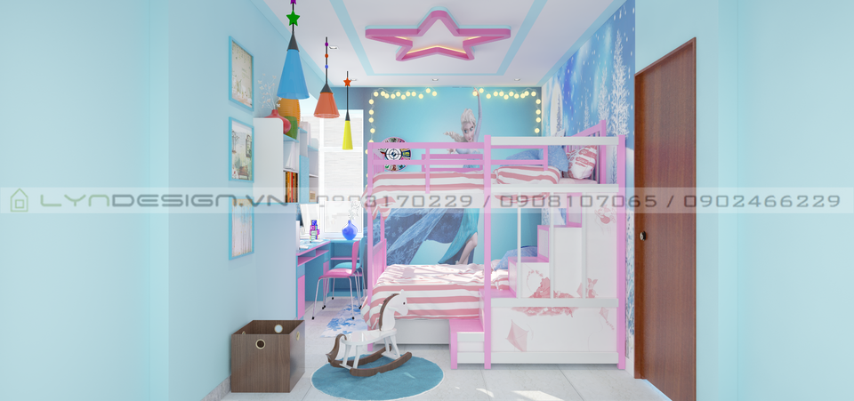 Ngoài ra, bức tường đơn sắc thông thường được LYN DESIGN khéo léo thay đổi đầy sáng tạo giúp không gian trở nên mới lạ, tránh cảm giác nhàm chán, đơn điệu.